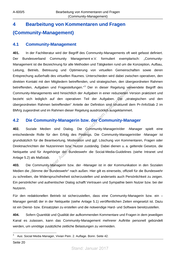 A-600/5 4 Bearbeitung von Kommentaren und Fragen (Community-Management) Bearbeitung von Kommentaren und Fragen (Community-Management) 4.1 Community-Management 401. In der Fachliteratur wird der Begriff des Community-Managements oft weit gefasst definiert. Der Bundesverband Community Management e.V. formuliert exemplarisch: „Community- Management ist die Bezeichnung für alle Methoden und Tätigkeiten rund um die Konzeption, Aufbau, Leitung, Betrieb, Betreuung und Optimierung von virtuellen Gemeinschaften sowie deren Entsprechung außerhalb des virtuellen Raumes. Unterschieden wird dabei zwischen operativen, den direkten Kontakt mit den Mitgliedern betreffenden, und strategischen, den übergeordneten Rahmen ! Der in dieser Regelung verwendete Begriff des st 2F en betreffenden, Aufgaben und Fragestellungen.“ 3 sd i Community-Managements wird hinsichtlich der Aufgaben in einer reduzierten Version praktiziert und ru ng bezieht sich lediglich auf den operativen Teil der Aufgaben. Die „strategischen und den de übergeordneten Rahmen betreffenden“ Anteile der Definition sind strukturell dem Pr-/InfoStab 2 im de m Än BMVg zugeordnet und im Rahmen dieser Regelung ausdrücklich ausgeklammert. Die Community-Managerin bzw. der Community-Manager 402. Soziale Medien sind Dialog. Die Community-Managerin/der -Manager spielt eine eg tn ic ht 4.2 te rli entscheidende Rolle für den Erfolg des Postings. Die Community-Managerin/der -Manager ist un grundsätzlich für die Beantwortung, Moderation und ggf. Löschung von Kommentaren, Fragen oder uc k Direktnachrichten der Nutzerinnen bzw. Nutzer zuständig. Dabei dienen u. a. geltende Gesetze, die rA ie Die Community-Managerin bzw. der -Manager ist in der Kommunikation in den Sozialen D 403. se Anlage 5.2) als Maßstab. us dr Netiquette und für Angehörige der Bundeswehr die Social-Media-Guidelines (siehe Intranet und Medien die „Stimme der Bundeswehr“ nach außen. Hier gilt es einerseits, offiziell für die Bundeswehr zu schreiben, die Widerspruchsfreiheit sicherzustellen und anderseits auch Persönlichkeit zu zeigen. Ein persönlicher und authentischer Dialog schafft Vertrauen und Sympathie beim Nutzer bzw. bei der Nutzerin. Für den redaktionellen Betrieb ist sicherzustellen, dass eine Community-Managerin bzw. ein – Manager gemäß der in der Netiquette (siehe Anlage 5.1) veröffentlichen Zeiten eingesetzt ist. Dazu ist ein Dienst- bzw. Einsatzplan zu erstellen und die notwendige Hard- und Software bereitzustellen. 404. Sofern Quantität und Qualität der aufkommenden Kommentare und Fragen in dem jeweiligen Kanal es zulassen, kann das Community-Management mehrerer Auftritte personell gebündelt werden, um unnötige zusätzliche zeitliche Belastungen zu vermeiden. 3 Aus: Social Media Manager, Vivian Pein. 2. Auflage. Bonn. Seite 42. Seite 20 Stand: Januar 2017