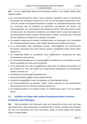 Vorgaben für den redaktionellen Betrieb von Auftritten in Sozialen Medien 204. A-600/5 Für den redaktionellen Betrieb eines Bundeswehr-Auftrittes in den Sozialen Medien gelten folgende Auflagen: • das Community-Management sollte in einem erweiterten Tagesdienst sowie am Wochenende sichergestellt sein (Montag bis Freitag: 09:00 - 21:00 Uhr und Samstag/Sonntag/Feiertag: 10:00 - 20:00 Uhr). Hierbei sind die arbeitszeitrechtlichen Vorgaben des „Bundesbeamtengesetzes“ sowie der „Verordnung über die Arbeitszeit der Beamtinnen und Beamten des Bundes“, des Arbeitszeitgesetzes, des „Tarifvertrages für den Öffentlichen Dienst (TVöD) Bereich Bund“ und der „Verordnung über die Arbeitszeit der Soldatinnen und Soldaten (SAZV)“ sowie deren ergänzende Durchführungsbestimmungen (Zentrale Dienstvorschrift A-1420/34 „Anwendung der Verordnung über die Arbeitszeit der Soldatinnen und Soldaten“) einzuhalten. ! • die inhaltliche Abstimmung mit anderen Veröffentlichungen der Bundeswehr muss sichergestellt en st sein. Zentrale Botschaften müssen in allen Auftritten widerspruchsfrei kommuniziert werden. ng sd i • es ist sicherzustellen, dass strafrechtlich relevante, volksverhetzende und diskriminierende ru Kommentare unverzüglich nach ihrem Erkennen gelöscht und gemeldet werden können (siehe Än de Abschnitt 4.4). m • der redaktionelle Betrieb ist grundsätzlich durch hauptamtliches Fachpersonal der InfoA/ de Personalwerbung wahrzunehmen. tn ic ht • die Social-Media-Managerinnen und -Manager sowie die Redakteurinnen und Redakteure müssen eg fachlich ausgebildet sein (siehe auch Nummer 406). te rli • für die Administration der Seite ist entsprechende mobile Hard- und Software bereitzustellen. Für k un die Erstellung von Fotos und Filmen muss entsprechende Kameratechnik und Bearbeitungs- dr uc software vorhanden sein. us • die militärische Sicherheit muss gewährleistet sein. se rA • datenschutzrechtliche Vorgaben müssen beachtet werden. D ie • Krisenkommunikationspläne müssen nachgewiesen und aktuell gehalten werden. • die Kommunikationsziele der jeweiligen Auftritte müssen ergänzend zu den grundsätzlichen Kommunikationszielen der Informationsarbeit klar definiert sein. • der Publikationsrhythmus muss definiert werden. Ein Redaktionsplan (siehe 3.1.3) muss geführt werden. 2.1 Auftritte von Paten oder anderen bundeswehrnahen Vereinen, Verbänden oder Stiftungen 205. Viele Dienststellen in der Bundeswehr haben eine Patenschaft mit einem Land, einer Stadt oder Gemeinde bzw. enge Verbindungen zu bundeswehrnahen Vereinen, Verbänden oder Stiftungen (tlw. auch als Freundeskreis oder Alumni bezeichnet). Einige von diesen pflegen einen eigenen Auftritt in Sozialen Medien. Seite 11 Stand: Januar 2017