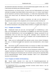 Redaktionelle Arbeit A-600/5 die bestehenden alternativen Informations- und Kommunikationswege gegeben werden, also z. B. die E-Mail Adresse der Behörde oder die Behörden-Webseite. Soweit Mechanismen zum Einsatz kommen, mit denen durch den Plattformbetreiber eine Nutzung außerhalb der jeweiligen Social Media-Plattform erfasst werden kann (z. B. Cookies, Social Plugins), sind die Nutzerinnen und Nutzer auf diese hinzuweisen, z. B. mittels eines entsprechenden Cookie- Banners oder Hinweis-Textes. Der öffentlichen Stelle obliegt hier eine eigene Informations- und Prüfpflicht. Die Datenschutzerklärung ist als solche zu bezeichnen und sollte wie das Impressum im Navigationsmenü als eigener Punkt untergebracht und mit maximal zwei Klicks erreichbar sein. 304. Für jeden Auftritt in den Sozialen Medien ist eine Netiquette zu veröffentlichen. Diese ist für sd i en st ! alle Auftritte der Bundeswehr in dem jeweiligen Medium einheitlich zu verwenden (siehe Anlage 5.1). Freigabe von Inhalten 305. Redaktionelle Inhalte sind nach dem „Vier-Augen-Prinzip“ vor Veröffentlichung zu über- de ru ng 3.1.2 Än prüfen. Bei Unstimmigkeiten oder Unsicherheiten ist grundsätzlich eine dritte Person hinzuziehen. de m Außerhalb des Gleitzeitrahmens ist die Community-Managerin/der -Manager verantwortlich für den ic ht veröffentlichten Inhalt und stimmt den Inhalt mit der zuständigen (Fach-) Sprecherin/ dem eg tn zuständigen (Fach-) Sprecher vom Dienst ab (z. B. Redaktion LKdo mit Sprecherin/Sprecher vom Sollten nach der Veröffentlichung Fehler gefunden werden, können einfache Flüchtigkeits- un 306. te rli Dienst PIZ SKB). dr uc k fehler, wie z. B. fehlende Buchstaben oder Satzzeichen sowie Buchstabendreher, online korrigiert rA Das Ersetzen von Sinn verändernden Wörtern, der Austausch von Bildern sowie inhaltliche se 307. us werden. D ie Änderungen müssen redaktionell für die Nutzerin/den Nutzer nachvollziehbar erklärt werden. 308. Das komplette Löschen eines Postings ist erst nach Rücksprache mit BMVg Pr-/InfoStab 2, 1 respektive außerhalb des Gleitzeitrahmens , mit der Sprecherin/dem Sprecher vom Dienst, BMVg, 0F gestattet. Bei Abwägung der Entscheidung über eine eventuelle Löschung sind der angestrebte Effekt und die gegenüberstehenden Risiken gründlich abzuwägen. Dabei ist der „Streisand-Effekt“ 2 1F besonders zu berücksichtigen. 3.1.2.1 Freigabe von Inhalten mit Einsatzbezug 309. Gemäß A-600/1, Abschnitt 3.2.4, nimmt das PIZ Einsatzführungskommando der Bundeswehr (PIZ EinsFüKdoBw) die InfoA im Zusammenhang mit den Einsätzen der Bundeswehr 1 2 Der Gleitzeitrahmen ist der in der jeweiligen Dienststelle vereinbarte zeitliche Rahmen in den der Arbeitsbeginn und das Arbeitsende fallen müssen. Siehe Glossar 5.4. Seite 13 Stand: Januar 2017