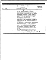 : ' •" ., ' ''. < ' I : '• ,f \ ,.; 1 I ' •• TOP SECRET 0 I RECTOR Is LOG ~TE OF )CUMENT DATE RECEIVED 8:30 AM, 28 Sept.- 8:30 AM, 29 Sept. FROM TO SUBJECT ACTION oso Otto S)corzeny, ex-Nazi paramilit.:U.y expert has offered through the Asst. U.S. Air Attache in iiadrid to· provide · to U.S. intelligence information obtained .from penetration of a Soviet espionage ring in the. western Zone of Germany. OSO' s i•iadrid representative has requested that Skorzeny be required to furnish more details b'efqre ·a meeting with appropriate U.S. officials can be arranged. ,, AJ OSO is arranging through the U.S. Attache in StockhoL'11 to have·Danish pilots with Scandinavian Airlines briefed for their flights through satellite countries·. ! ' The Director of the Security Division of AEC, has written the ADSO complimenting OSO for its surveillance of Sergio de Benedetti, AEC employee, during his recent European travels. · OPC ctA Gen. Eisenhower ·has expressed to consultant Edward:'i•i. Earle, a professor at.Princeton's Institute for Advanced Study, the view that psychological waJ:fare operations designed. to strengthen our Ji!ATO allies would, in his .opinion, be more productive than psychological warfar!) directed against our enemies, He has asked Professor Earle to disucss the matter.with interested private. individuals in the U'.S., in particular· Gen• Donovan. He believes that these operations should .. be ·conducted by private organizations and that the U.S.G6vernment should not be overtly associated with them. ( Negotiations with Turkish authori'ties''~e ~·eorganization of the Turkish police and security services appear to haire stallled, at least temporarily. Fuhctions. whiCh CIA hoped TOP SECRET SEP 2 S 191;~