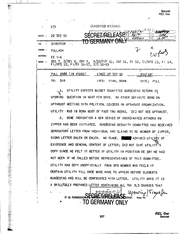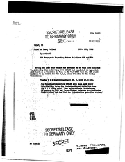 ·--------------- - - --·· Secret REL Ger SECRET/RELEASE TO G€RMANW ONI.) 22 DEC 55 PULL 2825 (IN 44193) PAGE co2- 2. liN VIEW . ~ COMMITTEE ACTION . IN F'OR POLITICAL AGREEMENT' UTI LI n' NOW FEELS BUDGET' , WILL BF. LARGELY A .~ FORMAL~ DR. BLANK WHO < SAY . ERICH MEND£ AT ADENAUER'S MEETING,. IS ASST CHAIRMAN THIS. . - ..-· . COMMITTEE. 3o ADENAUER \'VI LL ·ISSUE EXEC ORQER SO:\AETIME IN JANUARY• [iHIS WILL PROBABLY BE THE LEGALIZATION OR "L" DAY TO INITIATE ACTION TRANSFERRING ZIPPER 4. P~RSONNF.L AND PROPERTY TO UPSWIN~~ ALTHOUGH UPSWING WILL BF: SUBORDINATE CHANCEL.LOR" VERTEIOIGUNGSRAT WI LL Bf.: COUPENTENT DISCUSS NATIONAL tNTE"U PROBLEMSo 5. ALL FORftER OFFICERS IN ZIPPER WHO W!SH RETURN Ml LITARY · .. CAREERS OR ARE PRESENTLY UllCERTAIN THIS POINT .WILL BE ACCEPTED-. BY DEF MIN IN LMILfTARY SLOTS. I THf IR REASSIGNMENT FROM UPSWING TO THE DEF MIN OR ARMED ro..._RCES WILL BE HANDLED AS Sf.'PARATE PROBLF'.M . 'i ,· · ·~· ON CASE TO·CASE BASIS O~R LONG PERIOD Tl~o .· TliJS UPSWING WILL · .. HAVE UMJSUALLY HIGH .PRECENTAG£.'·.M1 LITARY PF'RSONNEL FOR NUMB~R YEA°RSo .' . ...?) . . EXCELLENT RELATIONSHIP TOP DEF MIN PERSONNEL ANO UTILTT'Y OBVIOUSLY· . .. .. ' SIMPLIFIES HANDLING INDIVIDUAL PERSONNEL PROBL'E'MSo U• AFTER EXECUTIVE ORDER ISSUED" - WILL ' .- · F'9R.M~LLY .i ·,.-· . ADVISE KUBARK AND DES I GNA TE· UT I LI TY TO REPRESENT UPGROWTH t N HANDLING S·E·C·R·E-T SECRET/RELEASE TO GERMANY ONLY REL Ger Secret 560