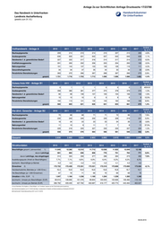 Anlage 2a zur Schriftlichen Anfrage Drucksache 17/23788 Das Handwerk in Unterfranken Landkreis Schweinfurt (jeweils zum 31.12.) Veränd. z. Vollhandwerk - Anlage A 2010 2011 2012 2013 2014 2015 2016 2017 Vj. in % Bauhauptgewerbe 108 106 105 103 98 98 95 94 -1,1% Ausbaugewerbe 352 351 359 360 360 357 349 342 -2,0% Handwerke f. d. gewerblichen Bedarf 114 109 111 110 108 105 101 102 1,0% Kraftfahrzeuggewerbe 152 152 150 146 148 148 144 151 4,9% Nahrungsmittel 93 90 92 90 87 86 81 77 -4,9% Gesundheitsgewerbe 12 13 13 12 11 12 12 14 16,7% Persönliche Dienstleistungen 132 130 130 131 140 142 142 145 2,1% gesamt 963 951 960 952 952 948 924 925 0,1% Veränd. z. Zulass.freie HW - Anlage B1 2010 2011 2012 2013 2014 2015 2016 2017 Vj. in % Bauhauptgewerbe 0 0 0 0 1 1 1 0 -100,0% Ausbaugewerbe 126 138 148 138 136 136 140 141 0,7% Handwerke f. d. gewerblichen Bedarf 20 23 25 27 27 28 25 25 0,0% Nahrungsmittel 6 5 5 5 4 3 3 3 0,0% Persönliche Dienstleistungen 46 55 62 70 73 91 97 108 11,3% gesamt 198 221 240 240 241 259 266 277 4,1% Veränd. z. Hw-ähnl. Gewerbe - Anlage B2 2010 2011 2012 2013 2014 2015 2016 2017 Vj. in % Bauhauptgewerbe 29 31 24 26 28 28 28 26 -7,1% Ausbaugewerbe 98 98 97 95 92 93 90 90 0,0% Handwerke f. d. gewerblichen Bedarf 13 12 11 11 10 10 9 9 0,0% Nahrungsmittel 9 10 9 8 8 9 7 6 -14,3% Persönliche Dienstleistungen 134 124 117 124 129 131 128 134 4,7% gesamt 283 275 258 264 267 271 262 265 1,1% Gesamt 1.444 1.447 1.458 1.456 1.460 1.478 1.452 1.467 1,0% Veränd. z. Strukturdaten 2010 2011 2012 2013 2014 2015 2016 2017 Vj. in % Beschäftigte gesamt (Jahresmittel) 1) 5.638 5.999 6.162 6.049 6.520 6.400 6.468 6.531 davon Lehrlinge 531 516 521 507 500 471 477 494 3,6% davon Lehrlinge, neu eingetragen 185 186 198 165 171 139 182 181 -0,5% Ausbildungsquote (Anteil an Beschäftigten) 9,4% 8,6% 8,5% 8,4% 7,7% 7,4% 7,4% 7,6% duchschn. Beschäftigte je Betrieb 3,9 4,1 4,2 4,2 4,5 4,3 4,5 4,5 Einwohner 2) 113.232 112.930 112.991 112.916 113.396 114.302 114.813 114.823 0,0% Handwerksdichte (Betriebe je 1.000 Einw.) 12,8 12,8 12,9 12,9 12,9 12,9 12,6 12,8 Hw-Beschäftigte (je 1.000 Einwohner) 50 53 55 54 57 56 56 57 Umsätze in Mio. EUR 1) 732 644 624 620 860 910 942 984 durchschn. Umsatz pro Beschäftigter (EUR) 129.833 107.351 101.266 102.496 131.902 142.188 145.640 150.666 durchschn. Umsatz pro Betrieb (EUR) 506.925 445.059 427.984 425.824 589.041 615.697 648.760 670.757 1) neue Datenbasis: Die Angaben zu "Beschäftigten" und "Umsätzen" basieren auf der Fortschreibung der Auswertung des Unternehmensregisters zum 31.12.2015 des Bayer. Landesamtes für Statistik und Datenverarbeitung, Schätzwerte 2016-2017 2) Einwohnerzahl: Fortschreibung Zensus 2011 zum 31.12.2016 08.06.2018