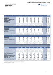 Anlage 2a zur Schriftlichen Anfrage Drucksache 17/23788 Das Handwerk in Unterfranken Landkreis Haßberge (jeweils zum 31.12.) Veränd. z. Vollhandwerk - Anlage A 2010 2011 2012 2013 2014 2015 2016 2017 Vj. in % Bauhauptgewerbe 105 105 105 104 101 95 95 95 0,0% Ausbaugewerbe 322 319 317 316 314 306 299 304 1,7% Handwerke f. d. gewerblichen Bedarf 109 112 107 103 101 102 101 99 -2,0% Kraftfahrzeuggewerbe 100 102 107 107 109 111 113 111 -1,8% Nahrungsmittel 81 78 73 74 71 69 67 67 0,0% Gesundheitsgewerbe 24 22 22 22 20 20 20 21 5,0% Persönliche Dienstleistungen 132 134 135 132 132 135 137 140 2,2% gesamt 873 872 866 858 848 838 832 837 0,6% Veränd. z. Zulass.freie HW - Anlage B1 2010 2011 2012 2013 2014 2015 2016 2017 Vj. in % Bauhauptgewerbe 0 0 0 0 0 0 0 0 #DIV/0! Ausbaugewerbe 135 129 130 130 132 135 137 141 2,9% Handwerke f. d. gewerblichen Bedarf 24 23 23 25 26 32 33 32 -3,0% Nahrungsmittel 12 10 10 10 10 10 10 10 0,0% Persönliche Dienstleistungen 56 59 60 67 79 93 103 107 3,9% gesamt 227 221 223 232 247 270 283 290 2,5% Veränd. z. Hw-ähnl. Gewerbe - Anlage B2 2010 2011 2012 2013 2014 2015 2016 2017 Vj. in % Bauhauptgewerbe 22 22 20 18 20 21 22 19 -13,6% Ausbaugewerbe 73 78 80 82 79 80 81 81 0,0% Handwerke f. d. gewerblichen Bedarf 8 7 7 7 6 6 6 6 0,0% Nahrungsmittel 8 8 7 6 7 7 8 6 -25,0% Persönliche Dienstleistungen 112 106 107 112 115 111 107 110 2,8% gesamt 223 221 221 225 227 225 224 222 -0,9% Gesamt 1.323 1.314 1.310 1.315 1.322 1.333 1.339 1.349 0,7% Veränd. z. Strukturdaten 2010 2011 2012 2013 2014 2015 2016 2017 Vj. in % Beschäftigte gesamt (Jahresmittel) 1) 5.881 5.771 6.131 6.080 6.130 6.188 6.254 6.315 davon Lehrlinge 651 641 606 580 568 545 566 561 -0,9% davon Lehrlinge, neu eingetragen 225 227 224 214 206 187 211 209 -0,9% Ausbildungsquote (Anteil an Beschäftigten) 11,1% 11,1% 9,9% 9,5% 9,3% 8,8% 9,1% 8,9% duchschn. Beschäftigte je Betrieb 4,4 4,4 4,7 4,6 4,6 4,6 4,7 4,7 Einwohner 2) 85.312 84.987 84.440 84.136 84.122 84.314 84.581 84.373 -0,2% Handwerksdichte (Betriebe je 1.000 Einw.) 15,5 15,5 15,5 15,6 15,7 15,8 15,8 16,0 Hw-Beschäftigte (je 1.000 Einwohner) 69 68 73 72 73 73 74 75 Umsätze in Mio. EUR 1) 598 526 640 629 640 665 689 720 durchschn. Umsatz pro Beschäftigter (EUR) 101.683 91.145 104.388 103.454 104.405 107.466 110.169 114.014 durchschn. Umsatz pro Betrieb (EUR) 452.003 400.304 488.550 478.327 484.115 498.875 514.563 533.729 1) neue Datenbasis: Die Angaben zu "Beschäftigten" und "Umsätzen" basieren auf der Fortschreibung der Auswertung des Unternehmensregisters zum 31.12.2015 des Bayer. Landesamtes für Statistik und Datenverarbeitung, Schätzwerte 2016-2017 2) Einwohnerzahl: Fortschreibung Zensus 2011 zum 31.12.2016 08.06.2018