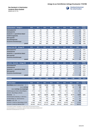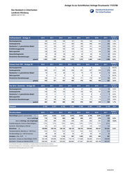 Anlage 2a zur Schriftlichen Anfrage Drucksache 17/23788 Das Handwerk in Unterfranken Stadt Aschaffenburg (jeweils zum 31.12.) Veränd. z. Vollhandwerk - Anlage A 2010 2011 2012 2013 2014 2015 2016 2017 Vj. in % Bauhauptgewerbe 41 38 39 41 39 34 35 37 5,7% Ausbaugewerbe 151 149 145 146 145 143 139 141 1,4% Handwerke f. d. gewerblichen Bedarf 63 61 64 60 61 58 53 50 -5,7% Kraftfahrzeuggewerbe 78 76 79 78 83 85 83 75 -9,6% Nahrungsmittel 35 32 31 31 32 31 30 29 -3,3% Gesundheitsgewerbe 35 35 35 37 39 39 37 37 0,0% Persönliche Dienstleistungen 117 120 118 111 116 114 111 117 5,4% gesamt 520 511 511 504 515 504 488 486 -0,4% Veränd. z. Zulass.freie HW - Anlage B1 2010 2011 2012 2013 2014 2015 2016 2017 Vj. in % Bauhauptgewerbe 1 1 1 1 1 1 1 2 100,0% Ausbaugewerbe 105 118 104 117 113 125 125 128 2,4% Handwerke f. d. gewerblichen Bedarf 58 68 66 66 62 62 59 58 -6,5% Nahrungsmittel 1 1 1 1 1 1 1 1 0,0% Persönliche Dienstleistungen 62 61 66 67 72 73 81 79 8,2% gesamt 227 249 238 252 249 262 267 268 2,3% Veränd. z. Hw-ähnl. Gewerbe - Anlage B2 2010 2011 2012 2013 2014 2015 2016 2017 Vj. in % Bauhauptgewerbe 27 28 29 26 24 23 23 17 -26,1% Ausbaugewerbe 63 61 61 60 56 56 60 58 -3,3% Handwerke f. d. gewerblichen Bedarf 4 9 6 6 5 5 5 5 0,0% Nahrungsmittel 6 6 5 4 5 5 5 6 20,0% Persönliche Dienstleistungen 86 86 89 93 89 93 90 93 3,3% gesamt 186 190 190 189 179 182 183 179 -2,2% Gesamt 933 950 939 945 943 948 938 933 -0,5% Veränd. z. Strukturdaten 2010 2011 2012 2013 2014 2015 2016 2017 Vj. in % Beschäftigte gesamt (Jahresmittel) 1) 4.936 5.017 5.065 4.736 4.780 4.830 4.881 4.929 davon Lehrlinge 818 771 752 729 684 663 626 612 -2,2% davon Lehrlinge, neu eingetragen 285 280 275 244 249 233 238 228 -4,2% Ausbildungsquote (Anteil an Beschäftigten) 16,6% 15,4% 14,8% 15,4% 14,3% 13,7% 12,8% 12,4% duchschn. Beschäftigte je Betrieb 5,3 5,3 5,4 5,0 5,1 5,1 5,2 5,3 Einwohner 2) 68.765 68.711 67.470 67.748 67.788 68.390 68.986 69.187 0,3% Handwerksdichte (Betriebe je 1.000 Einw.) 13,6 13,8 13,9 13,9 13,9 13,9 13,6 13,5 Hw-Beschäftigte (je 1.000 Einwohner) 72 73 75 70 71 71 71 71 Umsätze in Mio. EUR 1) 454 494 505 472 496 526 545 569 durchschn. Umsatz pro Beschäftigter (EUR) 91.977 98.465 99.704 99.662 103.766 108.903 111.657 115.439 durchschn. Umsatz pro Betrieb (EUR) 486.602 520.000 537.806 499.471 525.981 554.852 581.023 609.861 1) neue Datenbasis: Die Angaben zu "Beschäftigten" und "Umsätzen" basieren auf der Fortschreibung der Auswertung des Unternehmensregisters zum 31.12.2015 des Bayer. Landesamtes für Statistik und Datenverarbeitung, Schätzwerte 2016-2017 2) Einwohnerzahl: Fortschreibung Zensus 2011 zum 31.12.2016 08.06.2018