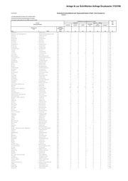 Anlage 5c zur Schriftlichen Anfrage Drucksache 17/23788 Unterfranken Tabelle 2 1) Ausbildungsberufe der Anlage A, B1 und B2 der HWO 2) Kaufmännische Berufe (Schlüssel beginnd mit 38xxx) 3) Sonstige Ausbildungsberufe (nach BBIG und § 42m HWO) Ausländische Auszubildende am 31.12.2017 Kon- Land der insgesamt davon in . . . Berufen troll- Staatsangehörigkeit handwerk- kauf- ziffer zusammen männlich weiblich 1) 2) sonstigen 3) lich männisch Schlüssel Bezeichnung Staatsangehö- Land rigkeit Text1 Text2 SA40 01 02 03 04 05 06 07 Albanien albanisch 121 4 3 1 2 1 1 121 Bosnien und Herzegowina bosnisch-herzegowinisch 122 7 5 2 5 2 0 122 Andorra andorranisch 123 0 0 0 0 0 0 123 Belgien belgisch 124 0 0 0 0 0 0 124 Bulgarien bulgarisch 125 7 6 1 5 1 1 125 Dänemark dänisch 126 0 0 0 0 0 0 126 Estland estnisch 127 0 0 0 0 0 0 127 Finnland finnisch 128 0 0 0 0 0 0 128 Frankreich französisch 129 3 3 0 2 0 1 129 Kroatien kroatisch 130 3 3 0 2 0 1 130 Slowenien slowenisch 131 1 0 1 1 0 0 131 Griechenland griechisch 134 8 6 2 6 2 0 134 Irland irisch 135 0 0 0 0 0 0 135 Island isländisch 136 0 0 0 0 0 0 136 Italien italienisch 137 30 20 10 23 5 2 137 Lettland lettisch 139 1 1 0 1 0 0 139 Montenegro montenegrinisch 140 1 1 0 1 0 0 140 Liechtenstein liechtensteinisch 141 0 0 0 0 0 0 141 Litauen litauisch 142 1 1 0 1 0 0 142 Luxemburg luxemburgisch 143 0 0 0 0 0 0 143 Mazedonien mazedonisch 144 3 3 0 2 0 1 144 Malta maltesisch 145 0 0 0 0 0 0 145 Moldau moldauisch 146 2 2 0 1 1 0 146 Monaco monegassisch 147 0 0 0 0 0 0 147 Niederlande niederländisch 148 0 0 0 0 0 0 148 Norwegen norwegisch 149 0 0 0 0 0 0 149 Kosovo kosovarisch 150 31 24 7 23 4 4 150 Österreich österreichisch 151 2 1 1 2 0 0 151 Polen polnisch 152 26 19 7 19 4 3 152 Portugal portugiesisch 153 2 2 0 1 0 1 153 Rumänien rumänisch 154 17 15 2 13 2 2 154 Slowakei slowakisch 155 0 0 0 0 0 0 155 San Marino san-marinesisch 156 0 0 0 0 0 0 156 Schweden schwedisch 157 1 1 0 1 0 0 157 Schweiz schweizerisch 158 0 0 0 0 0 0 158 Russische Föderation russisch 160 14 6 8 10 2 2 160 Spanien spanisch 161 3 2 1 1 1 1 161 Türkei türkisch 163 106 85 21 83 8 15 163 Tschechische Republik tschechisch 164 1 1 0 1 0 0 164 Ungarn ungarisch 165 6 5 1 3 1 2 165 Ukraine ukrainisch 166 21 16 5 18 2 1 166 Vatikanstadt vatikanisch 167 0 0 0 0 0 0 167 Vereinigtes Königreich britisch 168 0 0 0 0 0 0 168 Weißrussland weißrussisch 169 1 1 0 0 0 1 169 Serbien (ohne Kosovo) serbisch 170 3 3 0 3 0 0 170 Zypern zyprisch 181 0 0 0 0 0 0 181 Algerien algerisch 221 0 0 0 0 0 0 221 Angola angolanisch 223 0 0 0 0 0 0 223 Eritrea eritreisch 224 26 25 1 22 0 4 224 Äthiopien äthiopisch 225 6 3 3 2 1 3 225 Lesotho lesothisch 226 0 0 0 0 0 0 226 Botsuana botsuanisch 227 0 0 0 0 0 0 227 Benin beninisch 229 0 0 0 0 0 0 229 Dschibuti dschibutisch 230 0 0 0 0 0 0 230 Cote d Ivoire ivorisch 231 0 0 0 0 0 0 231 Nigeria nigerianisch 232 6 6 0 5 0 1 232 Simbabwe simbabwisch 233 0 0 0 0 0 0 233 Gabun gabunisch 236 0 0 0 0 0 0 236 Gambia gambisch 237 5 4 1 4 0 1 237 Ghana ghanaisch 238 1 1 0 1 0 0 238 Mauretanien mauretanisch 239 0 0 0 0 0 0 239 Kap Verde kap-verdisch 242 0 0 0 0 0 0 242 Kenia kenianisch 243 1 1 0 1 0 0 243 Komoren komorisch 244 0 0 0 0 0 0 244 Kongo kongolesisch 245 0 0 0 0 0 0 245 Kongo, Demokratische Republik der Demokratischen 246 0 0 0 0 0 0 246 Liberia Republik Kongo liberianisch 247 0 0 0 0 0 0 247 Libyen libysch 248 0 0 0 0 0 0 248 Madagaskar madagassisch 249 0 0 0 0 0 0 249 Mali malisch 251 0 0 0 0 0 0 251 Marokko marokkanisch 252 2 1 1 1 1 0 252 Mauritius mauritisch 253 0 0 0 0 0 0 253 Mosambik mosambikanisch 254 0 0 0 0 0 0 254 Niger nigrisch 255 0 0 0 0 0 0 255 Malawi malawisch 256 0 0 0 0 0 0 256 Sambia sambisch 257 0 0 0 0 0 0 257 Burkina Faso burkinisch 258 0 0 0 0 0 0 258 Guinea-Bissau guinea-bissauisch 259 0 0 0 0 0 0 259 Guinea guineisch 261 1 1 0 1 0 0 261 Kamerun kamerunisch 262 0 0 0 0 0 0 262 Südafrika südafrikanisch 263 0 0 0 0 0 0 263 Ruanda ruandisch 265 0 0 0 0 0 0 265 Namibia namibisch 267 0 0 0 0 0 0 267 Sao Tome und Principe sâo-toméisch 268 0 0 0 0 0 0 268 Senegal senegalesisch 269 0 0 0 0 0 0 269 Seychellen seychellisch 271 0 0 0 0 0 0 271 Sierra Leone sierra-leonisch 272 0 0 0 0 0 0 272 Somalia somalisch 273 3 3 0 2 0 1 273 Äquatorialguinea äquatorialguineisch 274 0 0 0 0 0 0 274 Sudan sudanesisch 277 0 0 0 0 0 0 277 Südsudan südsudanesisch 278 1 1 0 1 0 0 278 Swasiland swasiländisch 281 0 0 0 0 0 0 281 Tansania tansanisch 282 1 1 0 1 0 0 282