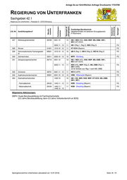 Anlage 8a zur Schriftlichen Anfrage Drucksache 17/23788 REGIERUNG VON UNTERFRANKEN Sachgebiet 42.1 Regierung von Unterfranken – Peterplatz 9 – 97070 Würzburg Fachklassen- Sprengel ab Gastschul- Sprengel Berufs- Zuständige Berufsschule Lfd.-Nr. Ausbildungsberuf (gegebenenfalls mit weiterem Einzugsbereich nummer Jahrgangsst. anordnung nummer in Klammern) 309 Verfahrensmechaniker für 13571 2016.10 - 12 10 NDB - Zwiesel (Bayern) FS Brillenoptik 310 Verfahrensmechaniker für Kunst- 0250.10 10 KG (UFR) FS stoff- und Kautschuktechnik - Formteile 15302 0250.11 - 12 11 OFR - Rehau G - Halbzeuge 15303 0250.11 11 OFR - Rehau FS 0251.12 0255.12 - Mehrschicht-Kautschukteile 15304 0250.11 11 OBB - Wasserburg a. Inn (Bayern) FS 0252.12 - Bauteile 15305 0250.11 11 OBB - Wasserburg a. Inn (Bayern) FS 0253.12 0256.12 - Faserverbundtechnologie 15308 0250.11 11 OBB - Wasserburg a. Inn (Bayern) G 0254.12 0256.12 - Compound- u. Masterbatchherst. 15309 0250.11 11 OFR - Rehau 0255.12 - Kunststofffenster 15307 0250.11 11 MFR - Rothenburg o. d. Tauber – Dinkelsbühl FS 0253.12 0256.12 311 Verfahrensmechaniker Glastech- 13130 0218.10 - 12 10 NDB - Zwiesel (Bayern) FS nik 312 Verfahrensmechaniker in der 19101 0210.11 - 13 11 MFR - Weißenburg (Bayern) auslaufend in FS Hütten- und Halbzeugindustrie 2020/21 313 Verfahrensmechaniker in der 11201 0277.10 - 12 10 OPF - Wiesau (Bayern) FS Steine- und Erdenindustrie 314 Verfahrenstechnologe Flachglas 13501 2011.10 10 NDB - Zwiesel (Bayern) aufsteigend ab 2018/19 FS 2012.11 - 12 315 Verfahrenstechnologe Metall 19101 0201.10 10 AB I, NES (KG), HAS, MSP, MIL-OBB, SW I, WÜ I (KT-OCH) aufsteigend ab 2018/19 0210.11 - 13 11 MFR - Weißenburg (Bayern) aufsteigend ab 2019/20 316 Verfahrenstechnologe Mühlen- 43512 10 Baden-Württemberg - Stuttgart aufsteigend ab und Getreidewirtschaft 2017/18 317 Vergolder 51261 0915.10 - 12 10 OBB - München (Bayern) FS 318 Verkäufer 66001 0122.10 - 11 10 AB II, KG, NES, HAS, MSP, KT-OCH, MIL-OBB, SW II, WÜ Kl 319 Vermessungstechniker 62401 2041.10 - 12 10 OBB - München (Bayern) FS 320 Verwaltungsfachangestellter 78702 0127.10 - 13 10 AB II (Reg1), SW II (Reg 3), WÜ Kl (Reg 2) FS 321 Wärme-, Kälte- und Schallschutz- 48232 0422.10 - 12 10 SCHW - Lindau (Bayern) FS isolierer 322 Wasserbauer 46531 10 Rheinland-Pfalz - Koblenz FS 323 Weintechnologe 42332 1341.10 - 12 10 KT-OCH (Bayern) FS 324 Werkfeuerwehrmann 63381 10 OBB - Freising (Bayern) FS 325 Werksteinhersteller 11211 0445.10 - 12 10 OFR - Bayreuth (Bayern) FS 326 Werkstoffprüfer 63231 0712.10 - 13 10 OFR - Selb (Bayern) FS Sprengelverzeichnis Unterfranken (aktualisiert am 13.07.2018) Seite 17 / 19
