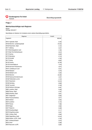 Seite 10 Bayerischer Landtag · 17. Wahlperiode Drucksache 17/200758 Beschäftigungsstatistik Frage_7 Mehrfachbeschäftigte nach Regionen Bayern Stichtag: 30.06.2017 Beschäftigte am Arbeitsort mit mindestens einem weiteren Beschäftigungsverhältnis Regionen Anzahl Insgesamt 659.991 09161 Ingolstadt, Stadt 9.765 09162 München, Landeshauptstadt 97.645 09163 Rosenheim, Stadt 5.122 09171 Altötting 5.407 09172 Berchtesgadener Land 4.785 09173 Bad Tölz-Wolfratshausen 5.912 09174 Dachau 6.209 09175 Ebersberg 5.716 09176 Eichstätt 4.756 09177 Erding 6.822 09178 Freising 10.709 09179 Fürstenfeldbruck 7.518 09180 Garmisch-Partenkirchen 4.814 09181 Landsberg am Lech 5.041 09182 Miesbach 5.478 09183 Mühldorf a.Inn 5.350 09184 München 24.285 09185 Neuburg-Schrobenhausen 4.407 09186 Pfaffenhofen a.d.Ilm 4.744 09187 Rosenheim 12.570 09188 Starnberg 6.838 09189 Traunstein 9.108 09190 Weilheim-Schongau 6.481 09261 Landshut, Stadt 5.436 09262 Passau, Stadt 4.767 09263 Straubing, Stadt 3.621 09271 Deggendorf 5.692 09272 Freyung-Grafenau 2.917 09273 Kelheim 4.905 09274 Landshut 6.134 09275 Passau 7.386 09276 Regen 2.982 09277 Rottal-Inn 5.399 09278 Straubing-Bogen 3.117 09279 Dingolfing-Landau 5.301 09361 Amberg, Stadt 2.946 09362 Regensburg, Stadt 14.518 09363 Weiden i.d.OPf., Stadt 3.736 09371 Amberg-Sulzbach 3.216 09372 Cham 5.469 09373 Neumarkt i.d.OPf. 5.264
