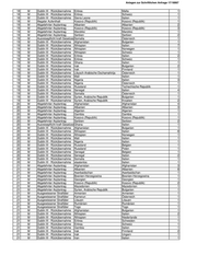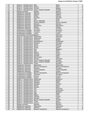 Anlagen zur Schriftlichen Anfrage 17/18067 ANLAGE 2 Abschiebungen 1. Halbjahr 2017 Alter Geschlecht Ausreisegrund Nationalität Zielstaat Anzahl <1 M Abgelehnter Asylantrag Albanien Albanien 1 <1 M Abgelehnter Asylantrag Bosnien-Herzegowina Bosnien-Herzegowina 1 <1 M Abgelehnter Asylantrag Kosovo (Republik) Kosovo (Republik) 3 <1 M Abgelehnter Asylantrag Mazedonien Mazedonien 1 <1 M Abgelehnter Asylantrag Serbien Serbien 1 <1 M Dublin III - Rückübernahme Irak Dänemark 1 <1 M Dublin III - Rückübernahme Russland Polen 1 1 M Abgelehnter Asylantrag Albanien Albanien 1 1 M Abgelehnter Asylantrag Armenien Tschechische Republik 1 1 M Abgelehnter Asylantrag Kosovo (Republik) Kosovo (Republik) 5 1 M Abgelehnter Asylantrag Mazedonien Mazedonien 1 1 M Abgelehnter Asylantrag Russland Russland 1 1 M Abgelehnter Asylantrag Syrien, Arabische Republik Belgien 1 1 M Ausreisepflicht kraft GesetzesPolen Polen 1 1 M Dublin III - Rückübernahme Afghanistan Slowenien 1 1 M Dublin III - Rückübernahme Russland Polen 3 1 M Dublin III - Rückübernahme Syrien, Arabische Republik Belgien 1 2 M Abgelehnter Asylantrag Albanien Albanien 1 2 M Abgelehnter Asylantrag Bosnien-Herzegowina Bosnien-Herzegowina 2 2 M Abgelehnter Asylantrag Kosovo (Republik) Kosovo (Republik) 2 2 M Abgelehnter Asylantrag Serbien Serbien 2 2 M Abgelehnter Asylantrag Syrien, Arabische Republik Lettland 1 2 M Ausreisepflicht kraft GesetzesSomalia Italien 1 2 M Dublin III - Rückübernahme Ukraine Estland 1 3 M Abgelehnter Asylantrag Albanien Albanien 1 3 M Abgelehnter Asylantrag Bosnien-Herzegowina Bosnien-Herzegowina 1 3 M Abgelehnter Asylantrag Mazedonien Mazedonien 1 3 M Abgelehnter Asylantrag Serbien Serbien 2 3 M Abgelehnter Asylantrag Ukraine Ukraine 1 3 M Dublin III - Rückübernahme Irak Bulgarien 1 3 M Dublin III - Rückübernahme Russland Polen 1 3 M Dublin III - Rückübernahme Syrien, Arabische Republik Belgien 1 4 M Abgelehnter Asylantrag Georgien Georgien 2 4 M Abgelehnter Asylantrag Mazedonien Mazedonien 4 4 M Abgelehnter Asylantrag Serbien Kosovo (Republik) 1 4 M Abgelehnter Asylantrag Serbien Serbien 1 4 M Abgelehnter Asylantrag Syrien, Arabische Republik Lettland 1 4 M Dublin III - Rückübernahme Syrien, Arabische Republik Schweden 1 5 M Abgelehnter Asylantrag Albanien Albanien 1 5 M Abgelehnter Asylantrag Bosnien-Herzegowina Bosnien-Herzegowina 4 5 M Abgelehnter Asylantrag Kosovo (Republik) Kosovo (Republik) 2 5 M Abgelehnter Asylantrag Mazedonien Mazedonien 1 5 M Abgelehnter Asylantrag Serbien Serbien 2 5 M Dublin III - Rückübernahme Armenien Dänemark 1 5 M Dublin III - Rückübernahme Irak Finnland 1 5 M Dublin III - Rückübernahme Russland Polen 2 5 M Dublin III - Rückübernahme Ukraine Litauen 1 6 M Abgelehnter Asylantrag Mazedonien Mazedonien 3 6 M Abgelehnter Asylantrag Russland Russland 1 6 M Abgelehnter Asylantrag Serbien Serbien 3 6 M Dublin III - Rückübernahme Ukraine Estland 1 7 M Abgelehnter Asylantrag Aserbaidschan Aserbaidschan 1 7 M Abgelehnter Asylantrag Bosnien-Herzegowina Bosnien-Herzegowina 1 7 M Abgelehnter Asylantrag Kosovo (Republik) Kosovo (Republik) 3 7 M Abgelehnter Asylantrag Mazedonien Mazedonien 3 7 M Abgelehnter Asylantrag Russland Polen 1 7 M Abgelehnter Asylantrag Serbien Serbien 1 7 M Abgelehnter Asylantrag Ukraine Polen 1 7 M Dublin III - Rückübernahme Äthiopien Norwegen 1 7 M Dublin III - Rückübernahme Irak Bulgarien 1 7 M Dublin III - Rückübernahme Russland Polen 1 7 M Dublin III - Rückübernahme Ukraine Estland 1