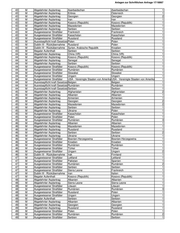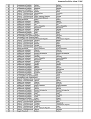 Anlagen zur Schriftlichen Anfrage 17/18067 11 W Abgelehnter Asylantrag Kasachstan Kasachstan 1 11 W Abgelehnter Asylantrag Kosovo (Republik) Kosovo (Republik) 1 11 W Abgelehnter Asylantrag Russland Polen 1 11 W Abgelehnter Asylantrag Serbien Serbien 1 11 W Dublin III - Rückübernahme Russland Polen 1 11 W Dublin III - Rückübernahme Ukraine Estland 1 12 W Abgelehnter Asylantrag Albanien Albanien 1 12 W Abgelehnter Asylantrag Mazedonien Mazedonien 1 12 W Abgelehnter Asylantrag Serbien Serbien 2 12 W Dublin III - Rückübernahme Syrien, Arabische Republik Schweden 1 13 W Abgelehnter Asylantrag Albanien Albanien 3 13 W Abgelehnter Asylantrag Kosovo (Republik) Kosovo (Republik) 2 13 W Abgelehnter Asylantrag Ukraine Ukraine 1 13 W Dublin III - Rückübernahme Iran Österreich 1 14 W Abgelehnter Asylantrag Albanien Albanien 1 14 W Abgelehnter Asylantrag Kosovo (Republik) Kosovo (Republik) 1 15 W Abgelehnter Asylantrag Albanien Albanien 1 15 W Abgelehnter Asylantrag Serbien Serbien 2 15 W Dublin III - Rückübernahme Kasachstan Lettland 1 16 W Abgelehnter Asylantrag Mazedonien Mazedonien 1 16 W Abgelehnter Asylantrag Serbien Serbien 1 17 W Abgelehnter Asylantrag Albanien Albanien 2 17 W Abgelehnter Asylantrag Georgien Georgien 1 17 W Abgelehnter Asylantrag Serbien Serbien 1 17 W Dublin III - Rückübernahme Ukraine Polen 1 18 W Abgelehnter Asylantrag Serbien Serbien 1 18 W Dublin III - Rückübernahme Russland Österreich 1 19 W Abgelehnter Asylantrag Albanien Albanien 1 19 W Abgelehnter Asylantrag Bosnien-Herzegowina Bosnien-Herzegowina 1 19 W Abgelehnter Asylantrag Mazedonien Mazedonien 1 19 W Abgelehnter Asylantrag Serbien Serbien 1 19 W Ausgewiesener Straftäter Polen Polen 1 19 W Dublin III - Rückübernahme Äthiopien Italien 1 19 W Dublin III - Rückübernahme Eritrea Italien 1 19 W Dublin III - Rückübernahme Sierra Leone Italien 1 20 W Abgelehnter Asylantrag Bosnien-Herzegowina Bosnien-Herzegowina 1 20 W Abgelehnter Asylantrag Kosovo (Republik) Kosovo (Republik) 1 20 W Ausgewiesener Straftäter Kroatien Kroatien 1 20 W Dublin III - Rückübernahme Afghanistan Slowenien 1 20 W Dublin III - Rückübernahme Äthiopien Italien 1 20 W Dublin III - Rückübernahme Nigeria Italien 1 20 W Dublin III - Rückübernahme Syrien, Arabische Republik Norwegen 1 21 W Abgelehnter Asylantrag Albanien Albanien 1 21 W Abgelehnter Asylantrag Mazedonien Mazedonien 1 21 W Abgelehnter Asylantrag Serbien Serbien 1 21 W Dublin III - Rückübernahme Aserbaidschan Tschechische Republik 1 21 W Dublin III - Rückübernahme Äthiopien Schweden 1 21 W Dublin III - Rückübernahme Irak Dänemark 1 21 W Dublin III - Rückübernahme Nigeria Italien 1 21 W Dublin III - Rückübernahme Russland Polen 1 22 W Abgelehnter Asylantrag Georgien Georgien 1 22 W Abgelehnter Asylantrag Kosovo (Republik) Kosovo (Republik) 1 22 W Abgelehnter Asylantrag Mazedonien Mazedonien 2 22 W Abgelehnter Asylantrag Serbien Serbien 1 22 W Ausreisepflicht kraft GesetzesSamoa Samoa 1 22 W Ausreisepflicht kraft GesetzesSomalia Italien 1 22 W Dublin III - Rückübernahme Aserbaidschan Frankreich 1 22 W Dublin III - Rückübernahme Nigeria Italien 1 22 W Dublin III - Rückübernahme Somalia Italien 1 23 W Abgelehnter Asylantrag Albanien Albanien 1 23 W Abgelehnter Asylantrag Kosovo (Republik) Kosovo (Republik) 1 23 W Abgelehnter Asylantrag Mazedonien Mazedonien 2 23 W Ausreisepflicht kraft GesetzesNigeria Österreich 1 23 W Dublin III - Rückübernahme Sierra Leone Italien 1 24 W Abgelehnter Asylantrag Bosnien-Herzegowina Bosnien-Herzegowina 1 24 W Abgelehnter Asylantrag Mazedonien Mazedonien 1 24 W Abgelehnter Asylantrag Serbien Serbien 1