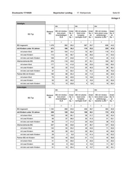 Drucksache 17/16529 Bayerischer Landtag · 17. Wahlperiode Seite 63 - 50 - Anlage 4 Ostallgäu dar. dar. dar. Bestand BG mit mindes- Anteil BG mit arbeits- Anteil BG mit mindes- Anteil BG tens einem Sp. 2 losen erzie- Sp. 4 tens einem Lang- Sp. 6 BG Typ erwerbstätigen an hungsbe- an zeitleistungs- an 1 2) ELB Sp. 1 rechtigten ELB Sp. 1 bezieher (LZB) Sp. 1 1 2 3 4 5 6 7 BG insgesamt 1.478 392 26,5 587 39,7 658 44,5 mit Kindern unter 18 Jahren 473 186 39,3 119 25,2 225 47,6 mit einem Kind 251 104 41,4 72 28,7 119 47,4 mit zwei Kindern 113 55 48,7 30 26,5 61 54,0 mit drei und mehr Kindern 109 27 24,8 17 15,6 45 41,3 Alleinerziehende-BG 276 118 42,8 97 35,1 162 58,7 mit einem Kind 177 74 41,8 59 33,3 100 56,5 mit zwei Kindern 62 32 51,6 25 40,3 36 58,1 mit drei und mehr Kindern 37 12 32,4 13 35,1 26 70,3 Partner-BG mit Kindern 192 68 35,4 22 11,5 63 32,8 mit einem Kind 70 30 42,9 13 18,6 19 27,1 mit zwei Kindern 50 23 46,0 5 10,0 25 50,0 mit drei und mehr Kindern 72 15 20,8 4 5,6 19 26,4 Unterallgäu dar. dar. dar. Bestand BG mit mindes- Anteil BG mit arbeits- Anteil BG mit mindes- Anteil BG tens einem Sp. 2 losen erzie- Sp. 4 tens einem Lang- Sp. 6 BG Typ erwerbstätigen an hungsbe- an zeitleistungs- an 1 2) ELB Sp. 1 rechtigten ELB Sp. 1 bezieher (LZB) Sp. 1 1 2 3 4 5 6 7 BG insgesamt 1.184 268 22,6 458 38,7 484 40,9 mit Kindern unter 18 Jahren 359 120 33,4 108 30,1 172 47,9 mit einem Kind 183 66 36,1 58 31,7 83 45,4 mit zwei Kindern 96 37 38,5 30 31,3 51 53,1 mit drei und mehr Kindern 80 17 21,3 20 25,0 38 47,5 Alleinerziehende-BG 237 80 33,8 87 36,7 127 53,6 mit einem Kind 142 50 35,2 49 34,5 71 50,0 mit zwei Kindern 66 28 42,4 26 39,4 40 60,6 mit drei und mehr Kindern 29 2 6,9 12 41,4 16 55,2 Partner-BG mit Kindern 122 40 32,8 21 17,2 45 36,9 mit einem Kind 41 16 39,0 9 22,0 12 29,3 mit zwei Kindern 30 9 30,0 4 13,3 11 36,7 mit drei und mehr Kindern 51 15 29,4 8 15,7 22 43,1