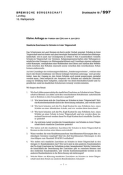 BREMISCHE BÜRGERSCHAFT Drucksache 18 / 997 Landtag 18. Wahlperiode Kleine Anfrage der Fraktion der CDU vom 4. Juni 2013 Staatliche Zuschüsse für Schulen in freier Trägerschaft Das Schulwesen im Land Bremen ist durch große Vielfalt geprägt. Schulen in freier Trägerschaft sind ein fester und gleichwertiger Bestandteil der bremischen Bildungs- landschaft, wie es auch das Grundgesetz in Artikel 7 Abs. 4 ausdrücklich vorsieht. Schulen in Trägerschaft von Vereinen, Religionsgemeinschaften oder Stiftungen er- möglichen das Erlangen von Bildungsabschlüssen auf Grundlage eigener pädagogi- scher Konzepte, ermöglichen eine Wahlfreiheit der Eltern und stärken den Wettbe- werb zwischen den Schulen einerseits sowie zwischen den verschiedenen Schul- formen andererseits. Auf der Grundlage des verfassungsrechtlichen „Sonderungsverbotes“, welches eine durch die Besitzverhältnisse der Eltern bedingte Selektion untersagt, wird gewähr- leistet, dass der Zugang zu den freien Schulen auch sozial ausgewogen gestaltet werden muss. Dem entspricht der Anspruch der Schulen auf staatliche Unterstüt- zung zur Erfüllung ihrer Aufgaben, zumal die von ihnen beschulten Kinder und Ju- gendlichen sonst im staatlichen Schulwesen versorgt werden müssten. Wir fragen den Senat: 1. Wie hoch fallen gegenwärtig die staatlichen Zuschüsse an Schulen in freier Träger- schaft in Bremen aus (bitte nach den verschiedenen Schulformen aufschlüsseln und in Relation zu den Gesamtkosten angeben)? 1.1 Wie berechnen sich die Zuschüsse an Schulen in freier Trägerschaft? Wel- che Kostenbestandteile sind in der Berechnung enthalten, und welche nicht? 1.2 Wie hoch belaufen sich die Pro-Kopf-Kosten für eine Schülerin bzw. einen Schüler an einer öffentlichen Schule, und wie werden diese berechnet? 1.3 Wie hoch belaufen sich die Pro-Kopf-Kosten für eine Schülerin bzw. einen Schüler an einer Schule in freier Trägerschaft, und wie werden diese be- rechnet? Inwieweit werden diese Pro-Kopf-Kosten durch staatliche Zuschüs- se gedeckt? 1.4 Zu welchem Anteil werden die Gesamtkosten von Schulen in freier Träger- schaft durch staatliche Zuschüsse gedeckt? 2. Wie haben sich die staatlichen Zuschüsse für Schulen in freier Trägerschaft in Bremen in den letzten zehn Jahren entwickelt? 3. Wann werden die vom Koalitionsausschuss beschlossenen Kürzungen den zu- ständigen Gremien vorgelegt? Sind die dort beschlossenen Kürzungen in den Anschlägen zum Haushalt 2014/2015 enthalten? 4. Wie stellen sich staatliche Zuschüsse an Schulen in freier Trägerschaft in den übrigen 15 Bundesländern dar? Wie hoch sind in den anderen Bundesländern die Pro-Kopf-Zuschüsse im Verhältnis zu den Gesamtkosten? Welche Unterschie- de hinsichtlich der Berechnung der Zuschüsse gibt es zwischen Bremen und den restlichen Bundesländern, und welche Kostenbestandteile werden in den anderen Bundesländern in die Berechnung mit einbezogen? 5. Welche Pläne zur Kürzung staatlicher Zuschüsse an Schulen in freier Träger- schaft sind dem Senat aus anderen Bundesländern bekannt? — 1 —