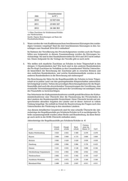 Übersicht über die Finanzierung der Privatschulen in den Ländern der Bundesrepublik Deutschland Zusammenstellung des Sekretariates der Kultusministerkonferenz (Beschluss der Kultusministerkonferenz vom 12.03.2004 i.d.F. vom 05.10.2012 ) Die tabellarische Übersicht über die Finanzierung der privaten Ersatzschulen in der Bundesrepublik Deutschland ist nach Ländern in alphabetischer Reihen- folge gegliedert. In Spalte I sind die Voraussetzungen erfasst, unter denen Regelfinanzhilfe gewährt wird. Unter II. ist - in der notwendigen verkürzten Form - dargestellt, wie sich diese Regelfinanzhilfe berechnet. In Spalte III ist erfasst, in welcher Form eine Prüfung der Verwendung der Finanzhilfe erfolgt. Neben der Regelfinanz- hilfe gibt es in allen Ländern auch noch andere Formen der Finanzhilfe für Ersatzschulen. Diese werden in Spalte IV als sonstige Arten von Finanzhilfe auf- gezählt. Die Tabelle schließt ab mit Spalte V, in der der Betrag angeben wird, der jährlich pro Schüler aufgewendet wird, wobei nach Schularten differenziert wird. Die Tabelle ist ferner - horizontal mit arabischen Zahlen - untergliedert nach Arten von Ersatzschulen, sofern dies für die einzelnen Länder deswegen erfor- derlich ist, weil Voraussetzungen und Berechnung der Regelfinanzhilfe sowie die Verwendungsprüfung oder sonstige Arten von Finanzhilfen für verschiede- ne Ersatzschulformen unterschiedlichen Regeln folgen. Die Fußnoten enthalten nähere Erläuterungen zu den einzelnen Punkten, die der Übersichtlichkeit halber nicht in die Tabelle aufgenommen werden konnten. Die Synopse macht deutlich, dass die Länder unterschiedliche Förderungsmodelle haben. Das gilt für die Art der Berechnung der Zuschüsse, aber auch für die Voraussetzungen, unter denen sie gewährt werden, insbesondere ob eine Wartefrist einzuhalten ist und welche Dauer sie hat. Die in der Spalte V der Synopse ausgewiesenen Beträge, die je Schüler jährlich aufgewendet werden, sind nur sehr bedingt vergleichbar, weil sie z.T. nur die Regelfinanzhilfe erfassen, sich auf unterschiedliche Zeiträume beziehen und weil eine zwischen Ländern unterschiedliche Zuordnung der verschiedenen Formen von Ersatzschulen einen Vergleich zusätzlich erschwert. ...
