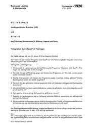 Thüringer Landtag 6. Wahlperiode Drucksache 6/ 17.03.2016 1920 Kleine Anfrage des Abgeordneten Brandner (AfD) und Antwort des Thüringer Ministeriums für Bildung, Jugend und Sport "Integration durch Sport" in Thüringen Die Kleine Anfrage 842 vom 28. Januar 2016 hat folgenden Wortlaut: Die Fraktion der AfD misst der "Integration durch Sport" eine hohe Bedeutung für die Integration unterschied lichster Gruppen in die Gesellschaft bei. Ich frage die Landesregierung: 1. Wie bewertet die Landesregierung die Durchführung des Programms "Integration durch Sport" in Thü ringen und wie begründet sie ihre Aussage? 2. Wie viele Anträge auf Förderung gingen seit Existenz des Programms ein? Wie viele konnten jeweils positiv beschieden werden? 3. Welche Vereine wurden seit Existenz des Programms jeweils in welchem Umfang gefördert? Welche Sportangebote werden dort jeweils angeboten? 4. Wie hoch ist in den geförderten Vereinen jeweils der Anteil von Ausländern (bitte gesondert Asylbewerber ausweisen)? 5. Mit welchen Mitteln und durch welche Maßnahmen setzten die geförderten Vereine die Integrationsarbeit jeweils konkret um? 6. Nach welchen Kriterien erfolgt die Auswahl der geförderten Vereine? 7. Bewertet die Landesregierung die zur Verfügung stehenden Mittel als ausreichend und wie begründet sie ihre Entscheidung? 8. Wie bewertet die Landesregierung eine mögliche Ausweitung des Projekts auf beispielsweise Menschen mit Behinderung oder die Bekämpfung des politischen Extremismus durch Sport? Das Thüringer Ministerium für Bildung, Jugend und Sport hat die Kleine Anfrage namens der Landesre gierung mit Schreiben vom 15. März 2016 wie folgt beantwortet: Zu1.: Die Landesregierung bewertet die Durchführung des Programms aus den nachfolgenden Gründen positiv. Der organisierte Sport hat eine besondere Integrationskraft und kann als Integrationsmotor wirken. Sport Druck: Thüringer Landtag, 6. April 2016