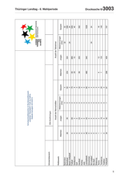 4 Schulsportwettbewerbe im Bundeswettbewerb JUGEND TRAINIERT FÜR OLYMPIA Drucksache 6/ Statistik Schuljahr 2013/2014 3003 Schulamtsbereich: SSA Westthüringen Anzahl der Mannschaften Anzahl der Teilnehmer Wettbewerb Mädchen/Jungen Mädchen/Jungen Mädchen Jungen Gesamt Mädchen Jungen Gesamt (mix) (mix) Badminton 4 4 32 32 Basketball 0 6 0 6 54 54 Beach-Volleyball 0 0 Fußball 9 43 0 52 90 575 665 Gerätturnen 0 0 0 0 Golf 0 0 0 0 Handball 13 16 0 29 143 176 319 Hockey 0 0 0 0 Judo 0 0 0 0 Leichtathletik 17 19 0 36 204 228 432 Schwimmen 0 0 0 0 Ski-Langlauf 0 0 0 0 Ski-Alpin 0 0 0 0 Skisprung 0 0 0 0 Tennis 0 0 0 0 Tischtennis 0 0 0 0 Triathlon 0 0 0 0 Volleyball 21 21 0 42 192 190 382 Thüringer Landtag - 6. Wahlperiode