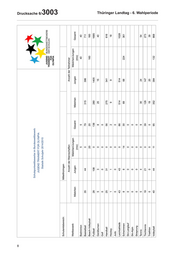 Schulsportwettbewerbe im Bundeswettbewerb JUGEND TRAINIERT FÜR OLYMPIA Statistik Schuljahr 2013/2014 Schulamtsbereich: SSA Nordthüringen Anzahl der Mannschaften Anzahl der Teilnehmer Wettbewerb Mädchen/Jungen Mädchen/Jungen Thüringer Landtag - 6. Wahlperiode Mädchen Jungen Gesamt Mädchen Jungen Gesamt (mix) (mix) Badminton 4 4 32 32 Basketball 17 37 0 54 153 333 486 Beach-Volleyball 4 3 7 24 24 Fußball 2 76 0 78 20 995 1015 Gerätturnen 0 0 3 3 Golf 0 0 0 0 Handball 10 19 0 29 110 209 319 Hockey 0 4 5 9 18 18 Judo 0 0 0 0 Leichtathletik 56 65 11 132 626 732 110 1468 Schwimmen 0 0 0 0 Ski-Langlauf 0 0 0 0 Ski-Alpin 0 0 0 0 Skisprung 0 0 0 0 Drucksache 6/ Tennis 0 1 0 1 6 6 Tischtennis 3 16 4 23 21 112 133 Triathlon 0 0 0 0 Volleyball 41 55 0 96 365 488 853 3003 7