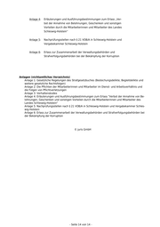 Anlage 4: Erläuterungen und Ausführungsbestimmungen zum Erlass „Ver- bot der Annahme von Belohnungen, Geschenken und sonstigen Vorteilen durch die Mitarbeiterinnen und Mitarbeiter des Landes Schleswig-Holstein“ Anlage 5: Nachprüfungsstellen nach § 21 VOB/A in Schleswig-Holstein und Vergabekammer Schleswig-Holstein Anlage 6: Erlass zur Zusammenarbeit der Verwaltungsbehörden und Strafverfolgungsbehörden bei der Bekämpfung der Korruption Anlagen (nichtamtliches Verzeichnis) Anlage 1: Gesetzliche Regelungen des Strafgesetzbuches (Bestechungsdelikte, Begleitdelikte und weitere gesetzliche Rechtsfolgen) Anlage 2: Die Pflichten der Mitarbeiterinnen und Mitarbeiter im Dienst- und Arbeitsverhältnis und die Folgen von Pflichtverletzungen Anlage 3: Verhaltenskodex Anlage 4: Erläuterungen und Ausführungsbestimmungen zum Erlass "Verbot der Annahme von Be- lohnungen, Geschenken und sonstigen Vorteilen durch die Mitarbeiterinnen und Mitarbeiter des Landes Schleswig-Holstein" Anlage 5: Nachprüfungsstellen nach § 21 VOB/A in Schleswig-Holstein und Vergabekammer Schles- wig-Holstein Anlage 6: Erlass zur Zusammenarbeit der Verwaltungsbehörden und Strafverfolgungsbehörden bei der Bekämpfung der Korruption © juris GmbH - Seite 14 von 14 -