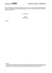 Drucksache 6/ 1608 Thüringer Landtag - 6. Wahlperiode Neben der allgemeinen Schlüsselzuweisung wurden durch das Land weitere steuerkraftunabhängige Zu- weisungen, insbesondere der Mehrbelastungsausgleich und die Pauschalen für Aufgaben der Kindertages- betreuung, ausgereicht. In Vertretung Götze Staatssekretär Anlagen*) *) Hinweis: Auf den Abdruck der Anlagen wurde verzichtet. Ein Exemplar mit Anlagen erhielten jeweils die Fraktionen und die Landtagsbibliothek. Des Weiteren können sie im Abgeordneteninformationssystem unter der oben genannten Druck- sachennummer sowie im Internet unter der Adresse: www.parldok.thueringen.de eingesehen werden. 2