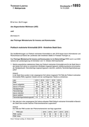 Politisch motivierte Kriminalität 2019 - Kreisfreie Stadt Gera