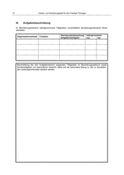72 Gesetz- und Verordnungsblatt für den Freistaat Thüringen III. Aufgabenbeschreibung Im Beurteilungszeitraum wahrgenommene Tätigkeiten, einschließlich beurteilungsrelevanter Abwe- senheiten: Dienstpostenbewertung/ wahrgenommen Organisationseinheit Funktion Aufgabenwertigkeit von bis Beschreibung der den Aufgabenbereich prägenden Tätigkeiten im Beurteilungszeitraum sowie Sonderaufgaben von besonderem Gewicht; dabei soll der besondere Bezug zu den zu beurteilen- den Leistungsmerkmalen deutlich werden.