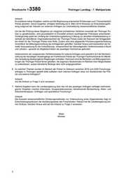 Drucksache 7/ 3380 Thüringer Landtag - 7. Wahlperiode Antwort: Es existieren keine Vorgaben, welche auf die Begrenzung empirischer Erhebungen zum Themenbereich Polizei abzielen. Davon losgelöst, erfolgten letztmalig am 6. März 2018 Hinweise zur Entscheidungsfin- dung aufgrund der Vielzahl von externen Anfragen zur Unterstützung wissenschaftlicher Arbeiten. Um bei der Prüfung dieser Begehren ein möglichst einheitliches Verfahren innerhalb der Thüringer Po- lizei zu gewährleisten, wird grundsätzlich im Einzelfall anhand nachfolgender Prämissen entschieden. Vordergründig spielt der Umfang der Unterstützungsleistung in Bezug zur aktuellen Arbeitsbelastung in- nerhalb der betroffenen Organisationseinheit der Thüringer Polizei sowie der Nutzwert der fertiggestell- ten Arbeit für die Thüringer Polizei eine Rolle. Zudem wird eine abgestufte Priorisierungsentscheidung hinsichtlich der Bildungseinrichtung der Anfragenden getroffen. Darüber hinaus wird letztendlich als for- melle Voraussetzung für die Unterstützung - entsprechend der überwiegenden Verfahrensweise in Bund und Ländern - generell ein Begleitschreiben der jeweiligen Hochschule gefordert. Unbenommen der vorgenannten Verfahrensweise für externe Anfragen sind speziell in § 5 der Bachelor- ordnung der derzeitigen Studiengänge am Fachbereich Polizei der Thüringer Fachhochschule für öffentli- che Verwaltung diesbezügliche Regelungen enthalten. Demnach sind die Behörden und Bildungseinrich- tungen der Thüringer Polizei ferner gehalten, die (eigenen) Studierenden im Rahmen ihrer Möglichkeiten zu unterstützen, soweit dienstliche Belange dem nicht entgegenstehen. 6. Zu welchen Themen wurden im Bereich der Polizei im Zeitraum zwischen 2016 und 2020 Forschungs- anfragen in Thüringen gestellt (bitte aufteilen nach internen Anfragen etwa von Studierenden der Poli- zei und externe Anfragen)? Antwort: Auf die Antwort zu Frage 2 wird verwiesen. 7. Welche Angaben kann die Landesregierung über das mit den jeweiligen Anfragen verfolgte methodolo- gische Vorgehen machen (Interviews, Gruppendiskussionen, teilnehmende Beobachtung, Akten- und Dokumentanalysen, Umfragen und quantitative Forschung)? Antwort: Die Auswahl wissenschaftlicher Erhebungsmethoden zur Untersuchung eines Gegenstandes liegt im Entscheidungsspielraum der beziehungsweise des Forschenden. Hierauf hat die Landesregierung kei- nen Einfluss. Darüber hinaus wird auf die Antwort zu Frage 2 verwiesen. Maier Minister 2