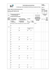 Anlage: Schichtenverzeichnis Anlage 3.1 für Bohrungen ohne durchgehende Gewinnung von gekernten Proben Seite: 1 Projekt: 13849 / OU Paul-Dohrmann-Schule Bohrzeit: von: 04.12.2013 Bohrung: MP 11/13 (1-10) bis: 04.12.2013 1 2 3 4 5 6 a) Benennung der Bodenart Entnommene Bis und Beimengungen Bemerkungen Proben b) Ergänzende Bemerkungen ... m Sonderprobe unter Wasserführung Tiefe Ansatz- c) Beschaffenheit d) Beschaffenheit e) Farbe Bohrwerkzeuge in m Art Nr punkt nach Bohrgut nach Bohrvorgang Kernverlust (Unter- Sonstiges kante) f) Übliche g) Geologische h) i) Kalk- Benennung Benennung Gruppe gehalt a) Feinsand; mittelsandig, humos (oben), Ziegelbruch, Schlacke feucht b) 0,35 c) d) e) braun bis schwarz f) Auffüllung g) h) i) a) b) c) d) e) f) g) h) i) a) b) c) d) e) f) g) h) i) a) b) c) d) e) f) g) h) i) a) b) c) d) e) f) g) h) i)