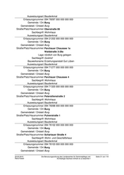 Ausweisungsart: Baudenkmal Erfassungsnummer: 094 76097 000 000 000 000 Gemeinde / Ort: Burg Gemeindeteil / Ortsteil: Burg Straße/Platz/Hausnummer: Oberstraße 86 Sachbegriff: Wohnhaus Ausweisungsart: Baudenkmal Erfassungsnummer: 094 21202 000 000 000 000 Gemeinde / Ort: Burg Gemeindeteil / Ortsteil: Burg Straße/Platz/Hausnummer: Parchauer Chaussee 1a Waldstraße 3-29a Lage: nördlich von Burg gelegen Sachbegriff: Gutshof Bauwerksname: Erziehungsanstalt Gut Lüben Ausweisungsart: Baudenkmal Erfassungsnummer: 094 71277 000 000 000 000 Gemeinde / Ort: Burg Gemeindeteil / Ortsteil: Burg Straße/Platz/Hausnummer: Parchauer Chaussee 4 Sachbegriff: Wohnhaus Ausweisungsart: Baudenkmal Erfassungsnummer: 094 71320 000 000 000 000 Gemeinde / Ort: Burg Gemeindeteil / Ortsteil: Burg Straße/Platz/Hausnummer: Petersilienstraße 2 Sachbegriff: Wohnhaus Ausweisungsart: Baudenkmal Erfassungsnummer: 094 76098 000 000 000 000 Gemeinde / Ort: Burg Gemeindeteil / Ortsteil: Burg Straße/Platz/Hausnummer: Pulverstraße 1 Sachbegriff: Wohnhaus Ausweisungsart: Baudenkmal Erfassungsnummer: 094 76102 000 000 000 000 Gemeinde / Ort: Burg Gemeindeteil / Ortsteil: Burg Straße/Platz/Hausnummer: Schartauer Straße 4 Sachbegriff: Wohn- und Geschäftshaus Ausweisungsart: Baudenkmal Erfassungsnummer: 094 76103 000 000 000 000 Gemeinde / Ort: Burg Gemeindeteil / Ortsteil: Burg 25.02.2015 Die Benutzungsordnung des Landesamtes für Denkmalpflege und Seite 31 von 110 Rene Kaiser Archäologie Sachsen-Anhalt ist zu beachten !