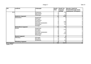 Seite 5 Anlage 5.2 Jahr Leistungsort Fachgebiet Anzahl Ärzte 2007 Innere Medizin 5 Kinderheilkunde 2 Orthopädie 1 Stendal/OT Uchtspringe Kinder-u.Jugendpsychiatrie 1 Nervenheilkunde 1 Weißenfels Chirurgie 1 Diagnostische Radiologie 1 Frauenheilkunde u.Geburtshilfe 1 Innere Medizin 2 Kinderheilkunde 1 Wernigerode Chirurgie 2 Frauenheilkunde u.Geburtshilfe 3 Innere Medizin 6 Kinderheilkunde 1 Strahlentherapie 1 Wittenberg Chirurgie 2 Frauenheilkunde u.Geburtshilfe 1 Innere Medizin 3 Kinderheilkunde 2 Zeitz Hals-Nasen-Ohrenheilkunde 1 Innere Medizin 4 2007 insgesamt 280 2008 Aschersleben Chirurgie 1 Frauenheilkunde u.Geburtshilfe 2 Innere Medizin 3 Urologie 2 Bad Kösen Kinderheilkunde 2 Bad Schmiedeberg Innere Medizin 1 Ballenstedt Innere Medizin 3 Barby Innere Medizin 1 Bernburg Anästhesiologie 1 Chirurgie 1 Innere Medizin 5 Kinderheilkunde 3 Neurologie und Psychiatrie 1