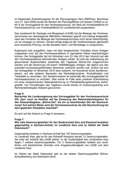3 Im Regionalen Entwicklungsplan für die Planungsregion Harz (REPHarz, Beschluss vom 21. April 2009) wurde der Bereich der Planungsfläche und dessen Umfeld zu ca. 90 % als Vorranggebiet für den Hochwasserschutz, der Rest als Vorbehaltsfläche für Hochwasserschutz und Vorbehaltsfläche für Landwirtschaft ausgewiesen. Das Landesamt für Geologie und Bergwesen (LAGB) hat die Belange des Hochwas- serschutzes als überwiegende öffentliche Interessen geprüft und bislang festgestellt, dass das Vorhaben die Belange des Hochwasserschutzes nicht derart beeinträchtigt, um es versagen zu können. Derzeit erfolgt aufgrund der Verfahrensdauer gleichwohl eine neuerliche Prüfung, um der aktuellen Sach- und Rechtslage zu entsprechen. Ergänzend wird ausgeführt, dass mit dem bergbaulichen Vorhaben keine Anlagen vorgesehen sind, die den Hochwasserabfluss in irgendeiner Weise beeinträchtigen können. Der Antragsteller hat mit Schreiben vom 23. Mai 2012 den Verzicht auf alle den Hochwasserabfluss behindernden Anlagen erklärt. So wird die Aufbereitung der gewonnenen Bodenschätze außerhalb des Tagebaus Bühne-Ost vorgenommen werden und die Gewinnung mit einem Tieflöffelbagger erfolgen, der täglich aus den potentiell hochwassergefährdeten Bereichen verbracht werden soll. Zudem hat sich der Antragsteller im November 2016 dazu bekannt, mit Ausnahme eines Sanitärcon- tainers, auf alle weiteren Bauwerke wie Werkstattcontainer, Produkthalden und Tankstelle zu verzichten. Der Sanitärcontainer ist außerhalb des Vorranggebietes für Hochwasserschutz zu errichten. Dies würde im Falle einer positiven Entscheidung mit einer entsprechenden Nebenbestimmung im Planfeststellungsbeschluss sicher- gestellt. Von Verwallungen des Tagebaus wurde bereits im Zulassungsantrag zum Rahmenbetriebsplan Abstand genommen. Frage 6: Betrachtet die Landesregierung das Vorranggebiet für den Hochwasserschutz VIII „Ilse“ auch im Hinblick auf die Zulassung des Rahmenbetriebsplans für den Kiessandtagebau „Bühne-Ost“ als ein zu beachtendes Ziel der Raumord- nung? Auf welche Weise wird der Hochwasserschutz als Ziel Raumordnung bei dem geplanten Kiesabbau beachtet? Es wird auf die Antwort zu Frage 5 verwiesen. Frage 7: Wie viele Gewinnungsstellen für den Bodenschatz Kies und Kiessand bestehen gegenwärtig in Sachsen-Anhalt, im Landkreis Harz und im Gebiet der Stadt Osterwieck? Gegenwärtig bestehen in Sachsen-Anhalt fast 140 Gewinnungsstellen. Im Landkreis Harz gibt es für den Rohstoff Kiessand derzeit 12 Gewinnungsstellen, die unter der Aufsicht des LAGB stehen. In der Zuständigkeit des Landkreises Harz liegen 7 weitere Gewinnungsstellen. Für 2 Gewinnungsstellen besteht aus recht- lichen und tatsächlichen Gründen eine Doppelzuständigkeit von LAGB und dem Landkreis Harz. Im Gebiet der Stadt Osterwieck gibt es die beiden Gewinnungsstellen Bühne- Schwalbenberg und Deersheim-Nord.