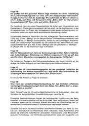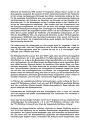 6 Frage 15: Ein großer Teil des geplanten Abbaus liegt innerhalb des durch Verordnung des Landesverwaltungsamts aus dem Jahr 2012 festgesetzten Überschwem- mungsgebietes Ilse. Hat die zuständige Wasserbehörde ihr Einvernehmen zu einem Abbau von Kies und Kiessand im Feld „Bühne-Ost“ im Überschwem- mungsgebiet erteilt? Wenn nein, aus welchen Gründen? Der Landkreis Harz als untere Wasserbehörde hat bisher kein Einvernehmen zum Kiessabbau im Überschwemmungsgebiet der Ilse erteilt, da die Ausführungen in den Antragsunterlagen zur Frage des Hochwasserschutzes seiner Auffassung nach un- zureichend waren und daher keine abschließende Beurteilung zuließen. Unbeschadet dessen ist hinsichtlich des hier vorliegenden Gewässerausbaus nach § 57b Abs. 3 Satz 1 BBergG nur ein bergrechtliches Planfeststellungsverfahren nach den §§ 57a bis 57c BBergG durchzuführen, sodass mit der zuständigen Wasserbe- hörde kein Einvernehmen herzustellen ist. Der Landkreis Harz ist insoweit am Zulas- sungsverfahren nach § 54 Abs. 2 Satz 1 BBergG aber wie geschehen zu beteiligen. Im Übrigen wird auf die Antwort zu Frage 5 verwiesen. Frage 16: Sind im Abbaugebiet nach dem zur Zulassung eingereichten Rahmenbetriebs- plan Aufschüttungen (Errichtung von Wällen) vorgesehen? Falls ja, gilt dies auch für die im Überschwemmungsgebiet der Ilse gelegenen Teilflächen? Der Antrag zur Zulassung des Rahmenbetriebsplanes sieht einen Verzicht auf die Anlage von Wällen während und nach Beendigung des Abbauvorhabens vor. Frage 17: Falls auf den im Überschwemmungsgebiet der Ilse gelegenen Teilflächen die Aufschüttung von Wällen vorgesehen ist: Liegt hierzu das Einvernehmen der zuständigen Wasserbehörde vor? Wenn nein, warum nicht? Es wird auf die Antwort zu Frage 16 verwiesen. Frage 18: Sind nach der Umweltverträglichkeitsprüfung für das Vorhaben erhebliche nachteilige Umweltauswirkungen durch den Abbau Feld „Bühne-Ost“ zu erwar- ten und wenn ja, welche? Nach Durchführung der Umweltverträglichkeitsprüfung ist festzustellen, dass das Vorhaben mit den gesetzlichen Umweltanforderungen vereinbar ist. Erhebliche Beeinträchtigungen können bei sachgerechter Durchführung des berg- baulichen Vorhabens zunächst auf die Schutzgüter Tiere und Pflanzen, Boden und Landschaft sowie auf das Schutzgut Wasser hinsichtlich der Verminderung des un- terirdischen Abflussquerschnittes im Schotterkörper des Ilsetals auftreten. Zunächst sind durch das Abbauvorhaben Ackerflächen betroffen und damit der Ver- lust von Lebensräumen für terrestrische Arten verbunden. Diese Ackerflächen sind jedoch als artenarme Ackerflächen einzustufen. Insbesondere unter Berücksichti- gung der Vermeidungs- und Verminderungsmaßnahmen sowie der Ausgleichs- und