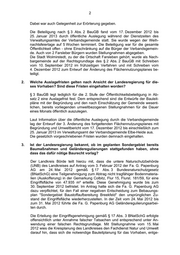 2 Dabei war auch Gelegenheit zur Erörterung gegeben. Die Beteiligung nach § 3 Abs. 2 BauGB fand vom 17. Dezember 2012 bis 25. Januar 2013 durch öffentliche Auslegung während der Dienstzeiten des Verwaltungsamtes der Verbandsgemeinde statt. Sie wurde wegen der Weih- nachtsfeiertage auf 5 Wochen terminiert. Die Beteiligung war für die gesamte Öffentlichkeit offen - ohne Einschränkung auf die Bürger der Verbandsgemein- de. Auch von 2 Farsleber Bürgern wurden Stellungnahmen abgegeben. Die Stadt Wolmirstedt, zu der die Ortschaft Farsleben gehört, wurde als Nach- bargemeinde auf der Rechtsgrundlage des § 2 Abs. 2 BauGB mit Schreiben vom 10. September 2012 im frühzeitigen Verfahren und mit Schreiben vom 4. Dezember 2012 zum Entwurf der Änderung des Flächennutzungsplanes be- teiligt. 2. Welche Auslagefristen gelten nach Ansicht der Landesregierung für die- ses Vorhaben? Sind diese Fristen eingehalten worden? § 3 BauGB legt lediglich für die 2. Stufe der Öffentlichkeitsbeteiligung in Ab- satz 2 eine Auslagefrist fest. Dem entsprechend sind die Entwürfe der Bauleit- pläne mit der Begründung und den nach Einschätzung der Gemeinde wesent- lichen, bereits vorliegenden umweltbezogenen Stellungnahmen für die Dauer eines Monats öffentlich auszulegen. Laut Information über die öffentliche Auslegung durch die Verbandsgemeinde lag der Entwurf der 3. Änderung des fortgeltenden Flächennutzungsplanes mit Begründung und Umweltbericht vom 17. Dezember 2012 bis einschließlich zum 25. Januar 2013 im Verwaltungsamt der Verbandsgemeinde Elbe-Heide aus. Die gesetzlich vorgeschriebenen Fristen wurden demnach eingehalten. 3. Ist der Landesregierung bekannt, ob im geplanten Sondergebiet bereits Baumaßnahmen und Geländeregulierungen stattgefunden haben, ohne dass das dafür nötige Baurecht vorlag? Der Landkreis Börde teilt hierzu mit, dass die untere Naturschutzbehörde (UNB) des Landkreises auf Antrag vom 3. Februar 2012 der Fa. G. Papenburg AG am 24. Mai 2012 gemäß § 17 Abs. 3 Bundesnaturschutzgesetz (BNatSchG) eine Teilgenehmigung zum Abtrag nicht tragfähiger Bodenmateria- lien (Auskofferung) in der Gemarkung Colbitz, Flur 15, Flurst. 181/59, für eine Eingriffsfläche von 47.935 m² erteilte. Diese Genehmigung wurde bis zum 30. September 2012 befristet. Im Antrag hatte sich die Fa. G. Papenburg AG dazu verpflichtet, für den Fall einer negativen Entscheidung zum Bebauungs- plan "Sondergebiet Baustoffaufbereitung Breekfeld" den ursprünglichen Zu- stand der Eingriffsfläche wiederherzustellen. In der Zeit vom 24. Mai 2012 bis zum 31. Mai 2012 führte die Fa. G. Papenburg AG Geländeregulierungsarbei- ten durch. Die Erteilung der Eingriffsgenehmigung gemäß § 17 Abs. 3 BNatSchG erfolgte offensichtlich unter Annahme falscher Tatsachen und entsprechend unter An- wendung einer falschen Rechtsgrundlage. Mit Stellungnahme vom 15. Mai 2012 wies die Kreisplanung des Landkreises den Fachdienst Natur und Umwelt darauf hin, dass sich die notwendige Bauleitplanung für das Vorhaben, entge-