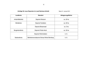 6 Anträge für neue Deponien im Land Sachsen-Anhalt Stand: 31. Januar 2013 Landkreis Standort Ablagerungsfläche Anhalt-Bitterfeld Deponie Roitzsch ca. 20 ha Bördekreis Deponie Farsleben ca. 20 ha Deponie Bresensaal ca. 2 ha Burgenlandkreis Deponie Profen-Nord ca. 35 ha Deponie Wolmirsleben k. A. Salzlandkreis Betriebsmonodeponie Solvay-Werke Bernburg k. A.