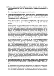 2 lung der Auskunftsverpflichtung gegenüber dem Parlament unter Geheimhaltungs- aspekten wirksame Vorkehrungen gegen das Bekanntwerden von Dienstgeheimnis- sen mit einbezogen werden können (vgl. LVerfG LSA, Urteil vom 17. September 2013, Az.: LVG 14/12; Urteil vom 25. Januar 2016, Az.: LVG 6/15). Hierzu zählt auch die Geheimschutzordnung des Landtages (GSO-LT). Die Einstufung als Verschluss- sache ist im vorliegenden Fall im Hinblick auf das Wohl des Landes Sachsen-Anhalt und die schutzwürdigen Interessen Dritter geeignet, das Informationsinteresse des Parlaments unter Wahrung berechtigter Geheimhaltungsinteressen der Landesregie- rung zu befriedigen (vgl. Artikel 53 Absatz 3 und 4 Verfassung des Landes Sachsen- Anhalt). In dem für die Öffentlichkeit einsehbaren Teil der Antwort können keine Informatio- nen zu Ausrüstung und taktischem Vorgehen des Spezialeinsatzkommandos mitge- teilt werden. Die als „Verschlusssache - Nur für den Dienstgebrauch“ eingestufte Antwort der Landesregierung steht den Abgeordneten des Landtages deshalb in der Geheim- schutzstelle (Akteneinsichtnahmeraum) des Landtages von Sachsen-Anhalt zur Ein- sichtnahme zur Verfügung. 1. Wie definiert die Landesregierung den Begriff „Sprengmittel“ im Allgemei- nen? Gemäß § 58 Abs. 3 SOG LSA sind Sprengmittel zum Sprengen bestimmte ex- plosionsfähige Stoffe. 2. Welche Sprengmittel werden von den Regelungen des SOG LSA explizit er- fasst? Die Vorschrift des § 58 Abs. 3 SOG LSA differenziert nicht nach einzelnen Arten von Sprengmitteln. 3. Mit welchen Sprengmitteln ist die Polizei in Sachsen-Anhalt ausgerüstet und in welcher Größenordnung? Die Landespolizei verfügt über Plastiksprengstoff, Sprengschnüre, Sprengfolien, Hohlladungen und Schneidladungen in Klein- bzw. Kleinstmengen. 3.1 Impliziert diese Regelung auch die Ausstattung der Polizei in Sachsen- Anhalt mit Handgranaten? Nein. 3.2 Für den Fall, dass die Frage unter Ziffer 3.1 mit ja beantwortet wird, wie groß ist die Anzahl der in Sachsen-Anhalt bei der Polizei befindlichen Handgranaten? Welche Einheiten beziehungsweise Spezialkräfte bei der Polizei in Sachsen-Anhalt sind damit ausgerüstet? Entfällt.