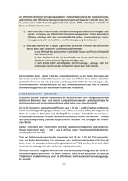 sie öffentlich-rechtliche Verwaltungsaufgaben, insbesondere solche der Daseinsvorsorge, wahrnehmen oder öffentliche Dienstleistungen erbringen und dabei der Kontrolle einer Stel- le, soweit diese in den Anwendungsbereich nach Absatz 1 fällt, unterliegen. Kontrolle im Sinne des Satz 1 liegt vor, wenn 1. die Person des Privatrechts bei der Wahrnehmung der öffentlichen Aufgabe oder bei der Erbringung der öffentlichen Dienstleistung gegenüber Dritten besonderen Pflichten unterliegt oder über besondere Rechte verfügt, insbesondere ein Kontra- hierungszwang oder ein Anschluss- und Benutzungszwang besteht, oder 2. eine oder mehrere der in Absatz 1 genannten juristischen Personen des öffentlichen Rechts allein oder zusammen, unmittelbar oder mittelbar a) die Mehrheit des gezeichneten Kapitals der Person des Privatrechts besitzt oder besitzen oder b) über die Mehrheit der mit den Anteilen der Person des Privatrechts ver- bundenen Stimmrechte verfügt oder verfügen oder c) mehr als die Hälfte der Mitglieder des Verwaltungs-, Leitungs- oder Auf- sichtsorgans der Person des Privatrechts stellen kann oder können. Die Grundregel des § 2 Absatz 1 legt den Anwendungsbereich für die Stellen des Landes, der Gemeinden und Gemeindeverbände sowie der unter der Aufsicht dieser Stellen stehenden juristischen Personen fest. Abs. 2 bezieht bereichsspezifisch Stellen der Verwaltung ein. Abs. 3 nimmt besonders sensible Bereiche aus dem Anwendungsbereich aus. Abs. 4 erweitert den Anwendungsbereich auf bestimmte Personen des Privatrechts. LAND & GEMEINDEN - § 2 ABSATZ 1 Erfasst von Nummer 1 werden insbesondere die Ministerien samt ihrer nachgeordneten und beliehenen Behörden. Aber auch oberste Landesbehörden wie der Landesbeauftragte für den Datenschutz und die Informationsfreiheit selbst fallen unter diese Vorschrift. Da für die Nummer 1 weitergehende Pflichten nach § 10 Abs. 3 und § 12 gelten, ist Nummer 1 laut Gesetzesbegründung eng auszulegen und umfasst nur solche Stellen, die insgesamt als Stelle des Landes zu betrachten sind. Der Begriff der sonstigen der Aufsicht des Landes un- terstehenden juristischen Personen des öffentlichen Rechts im Sinne der Nummer 3 umfasst laut Gesetzesbegründung jedenfalls Körperschaften, Anstalten und Stiftungen des öffentli- chen Rechts. Danach unterfallen auch Hochschulen nach § 8 Landeshochschulgesetzes und Landkreise, dessen Landratsamt nach § 1 Abs. 2 und 3 LKrO als untere Verwaltungsbehörde dem An- wendungsbereich des LIFG. Trotz des Selbstverwaltungsrechts der Gemeinden (Art. 28 Abs. 2 GG, Art. 71 Landesverfas- sung von Baden Württemberg (LV) unterliegen auch die Gemeinderäte dem LIFG. Dies gilt auch, soweit sie Satzungen erlassen, also „gesetzgeberisch“ tätig werden, da sie auch dabei immer als Verwaltung, nicht aber als Teil der Legislative handeln. Öffentlich-rechtliche Aufgaben kennzeichnet laut Gesetzesbegründung, dass die Stelle öf- fentliche Aufgaben wahrnimmt, für deren Annahme allein darauf abzustellen ist, dass die Tätigkeit sich als Wahrnehmung einer im öffentlichen Recht wurzelnden Verwaltungsaufga- be darstellt. 10