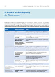 13 Ansätze zur Bekämpfung | Polizei Essen - BAO Aktionsplan Clan IV. Ansätze zur Bekämpfung der Clanstrukturen V. Ansätze zur Bekämpfung Bekämpfungsansätze gegen Clankriminalität sind einerseits zwar reichlich vorhanden, vor Gericht jedoch nicht immer zwingend erfolgreich. Allerdings sind Gerichtsverfahren ebenfalls nur ein Teilbereich der gesamtbehördlichen Strategie. Clankriminalität Bekämpfungsansätze gegen Clankriminalität sind einerseits zwar reichlich vorhanden, vor Gericht je- zu bekämpfen doch kannzwingend nicht immer nicht alleine durch Polizei erfolgreich. und Staatsanwaltschaft Allerdings sind Gerichtsverfahren erfolgen. Nachfolgend ebenfalls nur ein Teilbereich werden der einige Ansätze der gesamtbehördlichen beteiligten Strategie. Behörden dargestellt. Clankriminalität zu bekämpfen kann nicht alleine durch Polizei und Staatsanwaltschaft erfolgen. Nachfolgend werden einige Ansätze der beteiligten Behörden dargestellt. Ansatz Ansatz Behörde Behörde // Einrichtung Einrichtung Inhalt Inhalt Aufklärung / Polizei Strukturen, Verbindungen der Familien auch außerhalb des grundlegende Ruhrgebietes (z.B. Familienstrukturen in Deutschland und Informationen Europa) Wissenschaftliche Aufbereitung von Informationen, Analysen, Dokumentation Begleitung von Entwicklungen und Prozessen Polizei, Finanzamt, Zoll, Zuordnung Geschäftsstrukturen zu Personen, Handynummer, Agentur für Arbeit Konten Jobcenter (kommunal/ Leistungsermittlung gemeinsame Einrichtung / Agentur für Arbeit) Vermögensreduzierung Jobcenter, Familienkasse unabh. Verdachtsanzeigen, Großflächige Leistungsprüfung SGB II, Einstellungen, wiederholende Sanktionierung für 3 Monate; Maßnahmenzwang insbesondere für U25; Überprüfung durch Kindergeldstellen Zoll, Gewerbeaufsicht, Überprüfung und Schließung von Gewerben (z.B. Friseur- Handwerkskammer, Salons ohne Meister) und Shisha-Bars, etc. Ordnungsamt Finanzamt Einforderung an Banken Übersicht Konten nach Namen, Prüfung Kassen- sowie lohnsteuerlichen bzw. umsatzsteuerlichen Nachschauen Ordnungsamt, Überprüfung Mietobjekte und ggf. Räumung /Schließung bei Katasteramt, Feuerwehr Überbelegung Polizei, Staatsanwaltschaft Einziehung gem. §§ 73 ff. StGB, § 43 PolG NRW Überprüfung von Polizei, Finanzamt, Zoll Überprüfung von Auftragnehmern, Partnern, Eventmanagern, Geschäftspartnern und Anwälten, etc. Unterstützern Heranführung an Jugendamt, Schulamt, Durchsetzen der Schulpflicht, engmaschige Betreuung von staatliche Strukturen Gerichte Kindern aus Problemfamilien, Betreuung der Mütter
