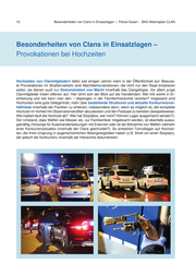 Polizei Essen - BAO Aktionsplan CLAN | Besonderheiten von Clans in Einsatzlagen 14 V. Besonderheiten von Clans in Einsatzlagen – Reizfaktoren Während Einsatzlagen aufgrund von Tumulten haben Polizeibeam- te immer wieder die Erfahrung gemacht, dass aggressive Clanmit- glieder ängstlich auf Hunde reagieren und schneller bereit sind, sich kooperativ zu verhalten, wenn sie von ihnen ferngehalten wer- den. Entsprechend eignet sich der Einsatz von Hundestaffeln in sämtlichen Maßnahmen von Polizei und Zoll. Die verbreitete Angst vor Hunden hat ihren Ursprung im sunnitischen Islam, in welchem diese als minderwertig und insbesondere ihr Speichel oder nasses Fell als unrein gelten. Daher kennen Angehörige arabischer Famili- enclans Hunde häufig nicht als Haustiere. Im Rapper- und Drogen- milieu werden vereinzelt Rassen wie Stafford Mix, Dobermann oder Rottweiler durch Clanmitglieder oder deren Partner genutzt, um Geschäftspartner und Gegner einzuschüchtern. Da sie meist selbst Angst vor ihnen haben, werden sie beispielsweise nur angekettet und nicht artgerecht gehalten, so dass sie getötet werden, wenn sie eine zu große Gefahr darstellen oder nach einem Polizeieinsatz in die Sicherstellung kommen. Diensthund der Polizei Der Einsatz von weiblichen Beamten hat bei Clanmitgliedern eben- falls eine Wirkung: Deren Rollenvorstellungen besagen, dass sich Frauen den Männern fügen müssen. Weisungen Außenstehender müssen zudem generell nicht befolgt werden. Vor allem Frauen im Polizeivollzugsdienst sind infolgedessen ein Reizfaktor. Sie wer- den nicht als staatliche Exekutive, sondern als Frauen in Uniform wahrgenommen. Damit stehen insbesondere junge Polizistinnen dem gelebten Weltbild der Clans diametral entgegen. Verhaltens- weisen männlicher Clanmitglieder vor allem im öffentlichen Raum demonstrieren, dass sie Polizistinnen nicht akzeptieren oder ernst nehmen. Entweder, sie verhalten sich arrogant, spöttisch, aggres- siv, anzüglich oder sie flirten offensiv. Polizistinnen ohne männliche Kollegen haben so Schwierigkeiten, Maßnahmen durchzuführen. Treten Polizistinnen entsprechend aggressiv auf, setzen sich durch und dominieren den Mann (z.B. in der Festnahme), kann dies des- sen Ehre verletzen. Weibliche Polizeibeamtin