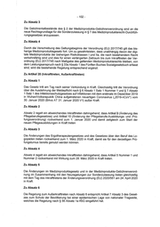 - 102 - Zu Absatz:3 Die Gebihrentatbestande des § 2 der Medizinprodukte-Gebiihrenverordnung sind an die neue Rechtsgrundlage fur die Sonderzulassung in § 7 des Medizinprodukterecht-Durchfih- rungsgesetzes anzupassen. Zu Absatz 4 Durch die Verschiebung des Geltungsbeginns der Verordnung (EU) 2017/745 gilt das bis- herige Medizinproduktegesetz fort. Um zu gewahrleisten, dass unabhangig davon der digi- tale Medizinprodukte der bisherigen Risikoklassen | und Ila, die nach bestehendem Recht verkehrsfahig sind und dies fur einen verlangerten Zeitraum bis zum Inkrafttreten der Ver- ordnung (EU) 2017/745 nach Ma&gabedes geltenden Medizinprodukterechts bleiben, von dem Leistungsanspruch nach § 33a Absatz 1 des Fiinften Buches Sozialgesetzbuch erfasst sind, wird die bestehende Regelung entsprechend erganzt. Zu Artikel 20 (inkrafttreten, AuRerkrafttreten) Zu Absatz 1 Das Gesetz tritt am Tag nach seiner Verkiindung in Kraft. Gleichzeitig tritt die Verordnung Uber die Ausdehnung der Meldepflicht nach § 6 Absatz 1 Satz 1 Nummer 1 und § 7 Absatz 1 Satz 1 des Infektionsschutzgesetzes auf Infektionen mit dem erstmals im Dezember 2019 in Wuhan/Volksrepublik China aufgetretenen neuartigen Coronavirus (,2019-nCoV“) vom 30. Januar 2020 (BAnz AT 31. Januar 2020 V1) auBer Kraft. Zu Absatz 2 Absatz 2 regelt ein abweichendes Inkrafttreten dahingehend, dass Artikel 9 (Anderung des Pflegeberufegesetzes) und Artikel 10 (Anderung der Pflegeberufe-Ausbildungs- und -Pri- fungsverordnung) ruckwirkend zum 1. Januar 2020 und damit zeitgleich zum Start der neuen Pflegeausbildungen in Kraft treten Zu Absatz 3 Die Anderungen des Ergotherapeutengesetzes und des Gesetzes tiber den Beruf des Lo- gopaden treten ruckwirkend zum 1. Marz 2020 in Kraft, damit sie fur den derzeitigen Pri- fungsturnus bereits genutzt werden kénnen. Zu Absatz 4 Absatz 4 regelt ein abweichendes Inkrafttreten dahingehend, dass Artikel5 Nummer 1 und Nummer 2 rickwirkend mit Wirkung zum 28. Marz 2020 in Kraft treten. Zu Absatz 5 Die Anderungen im Medizinproduktegesetz und in der Medizinprodukte-Gebuhrenverord- nung im Zusammenhang mit den Neuregelungen zur Sonderzulassung treten gleichzeitig mit dem Tag des Inkrafttretens der Anderungsverordnung (EU) 2020/561 am 24. April 2020 in Kraft. Zu Absatz6 Die Regelung zum Auferkrafttreten nach Absatz 6 entspricht Artikel 7 Absatz 3 des Geset- zes zum Schutz der Bevélkerung bei einer epidemischen Lage von nationaler Tragweite, welches die Regelung nach § 56 Absatz 1a IfSG eingefishrt hat.