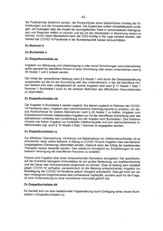 - 63 - die Positivenrate bestimmt werden, die Riickschliisse einen tatsachlichen Anstieg der Er- krankungen und die Viruszirkulation zuldsst. Die Ergebnisse sollten einzelfallbasiert vorlie- gen, um Aussagen Uber die Anzahl der durchgefihrten Tests in verschiedenen Altersgrup- pen und Regionen treffen zu kénnen und sie mit den Meldedaten in Beziehung setzen zu k6nnen. Durch diese Meldepflicht kann der OGD kunftig in die Lage versetzt werden, den Verlauf der COVID-19 Pandemie in der Bundesrepublik besser einzuschatzen. Zu Nummer 6 Zu Buchstabe a Zu Doppelbuchstabe aa Angaben zur Betreuung und Unterbringung in oder durch Einrichtungen und Unternehmen sollen generell fr betroffene Person in einer Einrichtung oder einem Unternehmen nach § 36 Absatz 1 und 2 erfasst werden. Der Inhalt der namentlichen Meldung nach § 9 Absatz 1 wird durch die Gesetzesanderung ausgeweitet auf die Art der Einrichtung oder des Unternehmens, in der die betroffene Per- son betreut wird oder untergebracht ist, solche Angaben sind nach § 11 Absatz 1 Satz 1 Nummer 1 Buchstabe f auch an die weiteren Behérden des 6ffentlichen Gesunddienstes zu Ubermitteln. Zu Doppelbuchstabe bb Die Angaben in Buchstabe k werden erganzt. Sie dienen zugleich im Rahmen der COVID- 19-Pandemie dazu, Angaben Uber wahrscheinliche Ubertragungsorte zu erheben, um dar- aus Rickschlisse fur weitere Mafnahmen nach § 28 Absatz 1 zu treffen. Angaben zum Expositionsort kénnen insbesondere Angaben zur Art der betroffenen Einrichtung oder des betrieblichen Umfeldes sein (unabhangig von der Angabe nach Buchstabe |. Des Weiteren mussen wie bisher Angaben zur konkreten Infektionsquelle und zum wahrscheinlichen In- fektionsrisiko (vgl. auch § 10 Absatz 2 Satz 1 Nummer 9) angegeben werden. Zu Doppelbuchstabe cc Zur effektiven Uberwachung, Verhitung und Bekampfung von Infektionskrankheiten ist es erforderlich, dass, sofern bekannt, in Bezug zu COVID-19 auch Angaben Uber das Behand- lungsergebnis (Genesung) tbermittelt werden. Dadurch kann der Erfolg der bestehenden _ Therapien besser bewertet werden. Dies wiederum ermdglicht es, Empfehlungen fir eine bessere Versorgung der betroffenen Personen zu erstellen. Ebenso sind Angaben Uber einen entsprechenden Serostatus Der spezifische, anzugeben. auf die Krankheit bezogene Immunstatus ist von groRer Bedeutung, um Impfdurchbriiche und die Dauer des Immunschutzes eingrenzen zu kénnen. Zwar ist bislang kein Impfstoff gegen COVID-19 verfiigbar, perspektivisch ist die Meldung entsprechender Angaben zur Bewaltigung der COVID-19-Pandemie jedoch dringend erforderlich. Dies gilt nicht nur vor dem Hintergrund méglicherweise bald vorhandener Impfstoffe, sondern auch fur die Frage, ob eine Vorerkrankung zu einer erworbenen Immunitat geftihrt hat. Zu Doppelbuchstabe dd Es handelt sich um eine redaktionelle Folgeanderung durch eines Buch- Einfiigung neuen staben n (Doppelbuchstabe cc).