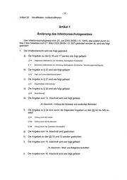 _ ~~ = -12- Artikel 20 Inkrafttreten, Auferkrafttreten Artikel 1 Anderung des Infektionsschutzgesetzes Das Infektionsschutzgesetz vom 20. Juli 2000 (BGBI. | S. 1045), das zuletzt durch Ar- tikel 3 des Gesetzes vom 27. Marz 2020 (BGBI.| S. 587) gedndert worden ist, wird wie folgt geandert: 1. Die Inhaltsibersicht wird wie folgt geandert: a) Die Angaben zu den § 16 und 17 werden wie folgt gefasst: »§ 16 Allgemeine MaRnahmen zur Verhitung Ubertragbarer Krankheiten § 17 Besondere Maf&nahmen zur Verhitung Ubertragbarer Krankheiten, Verordnungsermachtigung’. Die Angabezu § 22 wird wie folgt gefasst: »§22 Impf- und immunitaétsdokumentation". Die Angabezu § 27 wird wie folgt gefasst: »§27 Gegenseitige Unterrichtung‘. Die Angabe zu § 30 wird wie folgt gefasst: »930 Absonderung". e) Die Angabe zum 10. Abschnitt wird wie folgt gefasst: »10.Abschnitt — Volizug des Gesetzes und zustandige Behérden*. Die Angabe zu § 54 wird durch die folgenden Angaben zu den §§ 54 bis 54b er- setzt: #8 54 Vollzug durch die Lander § 54a Voilzug durch die Bundeswehr § 546 Volizug durch das Eisenbahn-Bundesamt*. Die Angabe zum 14. Abschnitt wird gestrichen. Die Angaben zu den §§ 70 und 72 werden gestrichen. Die Angabe zum 15. Abschnitt wird wie folgt gefasst: »14.Abschnitt - Straf- und Bu®geldvorsciriften’. )) Die Angabe zum 16. Abschnitt wird wie folgt gefasst: