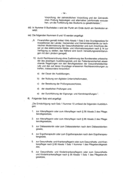 -14- Vorpriifung, der zahnarztlichen Vorpriifung und der Zahnarztli- chen Priifung festzulegen und alternative Lehrformate vorzuse- hen, um die Fortflhrung des Studiums zu gewahrleisten,“. dd) In Nummer 8 Buchstabe c wird der Punkt am Ende durch ein Semikolon er- setzt. ee) Die folgenden Nummern 9 und 10 werden angefiigt: 9. Finanzhilfen gema& Artikel 104b Absatz 1 Satz 2 des Grundgesetzes ftir investitionen der Lander, Gemeinden und Gemeindeverbande zur tech- nischen Modernisierung der Gesundheitsamter und zum Anschluss die- ser an das elektronische Melde- und Informationssystem nach § 14 zur Verfligung zu stellen; das Nahere wird durch Verwaltungsvereinbarun- gen mit den Landern geregelt; 10. durch Rechtsverordnung ohne Zustimmung des Bundesrates unbescha- det des jeweiligen Ausbildungsziels und der Patientensicherheit abwei- chende Regelungen von den Berufsgesetzen der Gesundheitsfachbe- rufe und den auf deren Grundlage erlassenen Rechtsverordnungen zu treffen, insbesondere ninsichtlich a) der Dauer der Ausbildungen, b) der Nutzung von digitalen Unterrichtsformaten, c) der Besetzung der Prifungsausschisse, d) der staatlichen Prifungen und, e) der Durchfuhrung der Eignungs- und Kenntnispriifungen.“. ff) Folgender Satz wird angefiigt: ,Die Ermachtigung nach Satz 1 Nummer 10 umfasst die folgenden Ausbildun- gen: 1. zur Altenpflegerin oder zum Altenpfleger nach § 58 Absatz 2 des Pflege- berufegesetzes, zur Altenpflegerin oder zum Altenpfleger nach § 66 Absatz 2 des Pflege- berufegesetzes, zur Diatassistentin oder zum Didtassistenten nach dem Didtassistenten- gesetz, zur Ergotherapeutin oder zum Ergotherapeuten nach dem Ergotherapeu- tengeseiz, zur Gesundheits- und Krankenpflegerin oder zum Gesundheits- und Kran- kenpfleger nach § 66 Absatz 1 Satz 1 Nummer 1 des Pflegeberufegeset- zes, zur Gesundheits- und Kinderkrankenpflegerin oder zum Gesundheits- und Kinderkrankenpfleger nach § 58 Absatz 1 Satz 1 des Pflegeberufe- gesetzes,