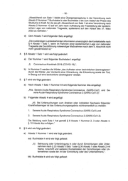 -16- ,Abweichend von Satz 1 bleibt eine Ubergangsregelung in der Verordnung nach Absatz 2 Nummer 7 Buchstabe b oder Buchstabe c bis zum Ablauf der Phase des Studiums in Kraft, flr die sie gilt. Aoweichend von Satz 1 ist eine Verordnung nach Absatz 2 Nummer 10 auf ein Jahr nach Aufhebung der Feststellung der epidemi- schen Lage von nationaler Tragweite, spatestens auf den Ablauf des 31. Marz 2022 zu befristen.“ d) Dem Absatz 7 wird folgender Satz angefigt: ,Die Zustandigen Landesbehdérdeninformieren unverziiglich die Kontaktstelle nach § 4 Absatz 1 Satz 7, wenn im Rahmen einer epidemischen Lage von nationaler Tragweite die Durchftihrung notwendiger MaRnahmen nach dem 5. Abschnitt nicht mehr gewahrleistet ist.“ 4. §6 Absatz 1 Satz 1 wird wie folgt geandert: a) Der Nummer 1 wird folgender Buchstabe t angefigt: »t) Coronavirus-Krankheit-2019 (COVID-19),*. b) In Nummer 5 werden die Wérter ,das Auftreten einer bedrohlichen tbertragbaren“ durch die Worter ,der Verdacht einer Erkrankung, die Erkrankung sowie der Tod, in Bezug auf eine bedrohliche Ubertragbare“ ersetzt. 5. §7 wird wie folgt geandert: a) Nach Absatz 1 Satz 1 Nummer 44 wird folgende Nummer 44a eingeftgt: »44a. Severe-Acute-Respiratory-Syndrome-Coronavirus (SARS-CoV) und Se- vere-Acute-Respiratory-Syndrome-Coronavirus-2 (SARS-CoV-2)". b) Folgender Absatz 4 wird angefiigt: (4) Bei Untersuchungen zum direkten oder indirekten Nachweis folgender Krankheitserreger ist das Untersuchungsergebnis nichtnamentlich zu melden: 1. Severe-Acute-Respiratory-Syndrome-Coronavirus (SARS-CoV) und 2. Severe-Acute-Respiratory-Syndrome-Coronavirus-2 (SARS-CoV-2). Die Meldung nach Satz 1 hat gema&® § 8 Absatz 1 Nummer 2, 3 oder Absatz 4, § 10 Absatz 4zu erfolgen.* 6. §9 wird wie folgt geandert: a) Absatz 1 Nummer 1 wird wie folgt geandert: aa) Buchstabe h wird wie folgt gefasst: ») Betreuung oder Unterbringung in oder durch Einrichtungen oder Unter- nehmen nach § 23 Absatz 5 Saiz 1 oder § 36 Absatz 1 oder Absaiz 2 mit Name, Anschrift und weiteren Kontaktdaten der Einrichtungen oder Un- ternehmen sowie der Art der Einrichtung oder des Unternehmens,*. bb) Buchstabe k wird wie folgt gefasst: