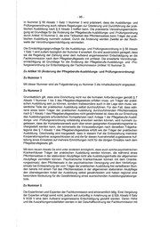 -95- In Nummer § 56 Absatz 1 Satz 1 Nummer 3 wird prazisiert, dass die Ausbildungs- und Prifungsverordnung auch nahere Regelungen zur Gliederung und Durchftihrung der prak- tischen Ausbildung nach § 6 Absatz 3 treffen kann. Die prazisierte Verordnungsermachti- gung ist Grundlage fur die Anderung der Pflegeberufe-Ausbildungs- und -Prifungsordnung durch Artikel 10 Nummer 2, die eine Teilbarkeit des Pflichteinsatzes beim Trager der prak- tischen Ausbildung nunmehr zulasst. Durch die Anderung werden Zweifel an der Reich- weite der Verordnungsermachtigung vermieden. Die Ermachtigungsgrundlage fur die Ausbildungs- und Priifungsverordnung in § 56 Absatz 1 Satz 1 wird zudem beziglich der Nummer 4 erweitert. Es wird ausdriicklich geregelt, dass sie die Regelung der Zahlung einer dem Aufwand angemessenen Entschadigung an die Fachkommission nach dem Pflegeberufegesetz mit umfasst. Die erweiterte Verordnungs- ermachtigung ist Grundlage fiir die Anderung der Pflegeberufe-Ausbildungs- und -Pri- fungsverordnung zur Entschadigung der Fachkommission (Artikel 10 Nummer 3). Zu Artikel 10 (Anderung der Pflegeberufe-Ausbildungs- und Priifungsverordnung) Zu Nummer 1 Mit dieser Nummer wird als Folgeanderung zu Nummer 3 die Inhaltstibersicht angepasst. | Zu Nummer 2 Grundsatzlich gilt, dass eine Einrichtung nicht nur die formalen Anforderungen gema& § 7 Absatz 1 Nummer 1 bis 3 des Pflegeberufegesetzes erfiillen muss, um Trager der prakti- schen Ausbildung sein zu kénnen, sondern insbesondere auch in der Lage sein muss, we- sentliche Teile der praktischen Ausbildung selbst durchzufulhren. Fir den Fall, dass wah- rend eines beim Trager der praktischen Ausbildung durchzufuhrenden Pflichteinsatzes nach § 7 Absatz 1 des Pflegeberufegesetzes nicht gewahrleistet ist, dass die zur Erreichung des Ausbildungsziels erforderlichen Kompetenzen nach Anlage 1 der Pflegeberufe-Ausbil- dungs- und -Priifungsverordnung vollstandig erworben werden kénnen, wird nunmehr zu- gelassen, dass der Kompetenzerwerb auch Uber einen geeigneten Kooperationspartner si- chergestelit werden kann, der seinerseits die Voraussetzungen nach derselben Tragerka- tegorie des § 7 Absatz 1 des Pflegeberufegesetzes erfullt wie der Trager der praktischen Ausbildung. Gleichzeitig wird klargestellt, dass in diesem Fall die Einbeziehung mehrerer Kooperationspartner ausgeschlossen ist und die fur diesen Ausnahmefall zugelassene Auf- teilung eines Einsatzes auf mehrere Einrichtungen nicht fur die Ubrigen Einsatze nach dem Pflegeberufegesetz gilt. Mit dem neuen Absatz 2a wird unter anderem erméglicht, dass auch solche psychiatrischen Krankenhauser Trager der praktischen Ausbildung werden k6énnen,die wahrend eines Pflichteinsatzes in der stationaren Akutpflege nicht alle Ausbildungsinhalte der allgemeinen Akutpflege vermitteln kénnen. Psychiatrische Krankenhauser kénnen mit dem Orientie- rungseinsatz, dem Pflichteinsatz in der psychiatrischen Versorgung und dem Vertiefungs- einsatz bei Einbeziehung der vom Trager der praktischen Ausbildung frei verteilbaren Stun- den bereits mit einem Teil des Pflichteinsatzes in der allgemeinen stationaren Akutpflege den Uberwiegenden Anteil der Ausbildung selbst gewahrleisten und haben regional eine besondere Bedeutung fiir die Gewahrleistung eines ausreichenden Ausbildungsplatzange- bots. Zu Nummer 3 Die Expertinnen und Experten der Fachkommission sind ehrenamtlich tatig. Eine Vergitung der Experten erfolgt somit nicht, jedoch soll zukiinftig in Anlehnung an § 92b Absatz 6 Satz 6 SGB V eine dem Aufwand angemessene Entschddigung gezahlt werden. Deren Héhe und die Auszahlungsmodalitaten werden in der Geschaftsordnung der Fachkommission mit