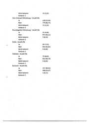 Nicht bekannt 12 (1,31) Fehlend: 2 Herz-Kreislauf-Erkrankung- Anzahl (%) Ja 128 (13,93) Nein 779 {84,77} Nicht bekannt 12 (1,31) Fehlend: 0 Neurologische Erkrankung- Anzahl (%) Ja 41 (4,46) Nein 875 (95,21) Nicht bekannt . 3 (0,33) Fehlend: 0 Krebs- Anzahl (%) .---. Ja 69 (7,52) Nein 842 (92,82) Nicht bekannt 6 (0,65) Fehlend: 2 Diabetes- Anzahl (%) Ja 79 (8,62) Nein 832 (90,73) Nicht bekannt 6 {0,65) Fehlend: 2 Karneval -Anzahl (%) Ja 417 (45,52) Nein 498 (54,37) Nicht bekannt 1 (0,11) Fehlend: 3 .~