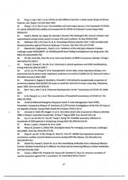 22. Feng Y, Ung Y, Bai T, et al. COVID-19 with Different Severity: A Multi-center Study of Clinical Features. Am J Respir Crit Care Med 2020. 23. Wang T, DuZ, Zhu F, et al. Comorbidities and multi-organ injuries in the treatment of COVID- 19. Lancet 2020;395:e52.mellitus at increased risk for COVID-19 infection? Lancet Respir Med 2020;8:e21. 25. Asadi S, Wexler AS, Cappa CD, Barreda S, Bauvier NM, Ristenpart WD. Aerosolemission and Superemission during human speech increase with voice loudness. Sei Rep 2019;9:2348. 26. WilkinsonTM, Li CK, Chui es, et al. Preexisting influenza-specific CD4+ T cells correlate with disease protection against influenza challenge in humans. Nat Med 2012;18:274-80. 27. Memoli MJ, Czajkowski L, Reed S, et al. Validation of the wild-type influenza A human challenge model H1N1pdMIST: an A(H1N1)pdm09 dose-finding investigational new drug study. Clin lnfect Dis 2015;60:693-702. 28. Oh MD, Park WB, Choe PG, et al. Viral Load Kinetics of MERS Coronavirus lnfection. N Engl J Med 2016;375:1303-5. 29. Hung IF, Cheng VC, Wu AK, et al. Viralloads in clinical specimens and SARS manifestations. .. -"'-: Ernerg lnfect Dis 2004;10:1550-7. 30. Lai cc, Liu YH, Wang CY, et al. Asymptomatic carrier state, acute respiratory disease, and pneumonia due to severe acute respiratory syndrome coronavirus 2 (SARS-CoV-2): Factsand myths. J Microbiol lmmunollnfect 2020. 31. Mizumoto K, Kagaya K, Zarebski A, Chowell G. Estimating the asymptomatic proportion of coronavirus disease 2019 (COVID-19) cases on board the Diamond Princess cruise ship, Yokohama, Japan, 2020. Euro Sl1rvei112020;25. 32. Bai Y, Yao L, WeiT, et al. Presumed Asymptomatic Carrier Transmission of COVID-19. JAMA 2020. 33. Li W, Zhang B, Lu J, et al. The characteristics of hausehold transmission of COVID-19. Clin lnfect Dis 2020. 34. Covid-19 National Emergency Response Center E, Case Management Team KCfDC, Prevention. Coronavirus Disease-19: Summary of 2,370 Contact lnvestigations of the First 30 Cases in the Republic of Korea. Osong Public Health Res Perspect 2020;11:81-4. ".-.-· 35. · Carcione D, Giele CM, Gaggin LS, et al. Secondary attack rate of pandernie influenza A(H1N1) 2009 in Western Australian households~ 29 May-7 August 2009. Euro Surveill2011;16. 36. Lau JT, Lau M, Kim JH, Tsui HY, Tsang T, Wong TW. Probable secondary infections in households of SARS patients in Hong Kong. Ernerg lnfect Dis 2004;10:235-43. 37. Braun J, Loyal L, Frentsch M, etal. 2020. 38. Meyer B, Drosten C, Muller MA. Serological assays for ernerging coronaviruses: challenges and pitfalls. Virus Res 2014;194:175-83. 39. Chan JF, Lau SK, To KK, Cheng VG, Woo PC, Yuen KY. Middle East respiratory syndrome coronavirus: another zoonotic betacoronavirus causing SARS-Iike disease. Clin Microbiol Rev 2015;28:465-522. 40. llinykh PA, Huang K, Santos Rl, et al. Non-neutralizing Antibodies from a Marburg lnfection Survivor Mediate Protection by Fc-Effector Functions and by Enhancing Efficacy of Other Antibodies. Ce II Host Microbe 2020. 41. Corey l, Gilbert PB, Tomaras GD, Haynes BF, Pantaleo G, Fauci AS. Immune correlates of vaccine protection against HIV-1 acquisition. Sei Transl Med 2015;7:310rv7. 17