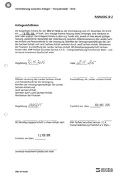 Vereinbarung zwischen Anleger - Verwahrstelle - KVG Anlagerichtlinien ANHANG B-2 Der beigefügte Anhang für den Elbe-Ul-Fonds zu der Vereinbarung vom 25. November 2014 tritt am___19 FEB, 2015_ in Kraft. Eine etwaige frühere Fassung dieses Anhanges wird hierdurch er- setzt oder ergänzt. Die Anlagerichtlinien zu dem 0.9. Fonds sind, jeweils in ihrer aktuell gültigen Fassung, wesentlicher Bestandteil der Vereinbarung zwischen Altlastensanierung des Landes Sach- sen-Anhalt und Pensionsfonds für die Versorgung, Beihilfen der Versorgungsempfänger des Lan- des Sachsen-Anhalt und Land Sachsen-Anhalt vertreten durch Land Sachsen-Anhalt, Ministerium der Finanzen, Kunststiftung des Landes Sachsen-Anhalt, IBG Beteiligungsgesellschaft Sachsen- Anhalt mbH, BNP Paribas Securities Services S.C.A. - Zweigniederlassung Frankfurt am Main - und Universal-Investment-Gesellschaft mbH. Magdeburg, A ‚dh. eh) 15 Altlaster sanierung des Landes Sachsen-Anhalt und Pensionsfonds für die Versorgung, Beihilfen der Versorgungsempfänger des Landes Sachsen-Anhalt und Land Sachsen-Anhalt vertreten durch Land Sachsen-Anhalt, Ministerium der Finanzen Magdeburg, VHS, AT IBG Beteiligungsgesetischaft Schsen-Anhalt mbH 12. FEB, 205 Frankfurt am Main, Universal-Investment-Gesellschaft mbH Elbe-Ul-Fonds Halle, 2 I: DET Kunststiftung les _andes »achsen-Anhalt Frankfurt am Main, 09, MRZ. 200 BNF Par’bas Securities Services 3.C.A. - Zweigriederlassung Frankfurt an Main - —— UNIVERSAL u) INVESTMENT