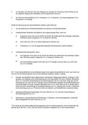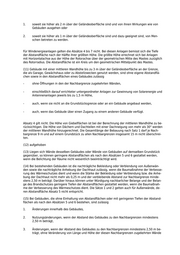 1. soweit sie höher als 2 m über der Geländeoberfläche sind und von ihnen Wirkungen wie von Gebäuden ausgehen oder 2. soweit sie höher als 1 m über der Geländeoberfläche sind und dazu geeignet sind, von Men- schen betreten zu werden. Für Windenergieanlagen gelten die Absätze 4 bis 7 nicht. Bei diesen Anlagen bemisst sich die Tiefe der Abstandfläche nach der Hälfte ihrer größten Höhe. Die größte Höhe errechnet sich bei Anlagen mit Horizontalachse aus der Höhe der Rotorachse über der geometrischen Mitte des Mastes zuzüglich des Rotorradius. Die Abstandfläche ist ein Kreis um den geometrischen Mittelpunkt des Mastes. (11) Gebäude mit einer mittleren Wandhöhe bis zu 3 m über der Geländeoberfläche an der Grenze, die als Garage, Gewächshaus oder zu Abstellzwecken genutzt werden, sind ohne eigene Abstandflä- chen sowie in den Abstandflächen eines Gebäudes zulässig - ohne Öffnungen in den der Nachbargrenze zugekehrten Wänden, - einschließlich darauf errichteter untergeordneter Anlagen zur Gewinnung von Solarenergie und Antennenanlagen jeweils bis zu 1,5 m Höhe, - auch, wenn sie nicht an die Grundstücksgrenze oder an ein Gebäude angebaut werden, - auch, wenn das Gebäude über einen Zugang zu einem anderen Gebäude verfügt. Absatz 4 gilt nicht. Die Höhe von Giebelflächen ist bei der Berechnung der mittleren Wandhöhe zu be- rücksichtigen. Die Höhe von Dächern und Dachteilen mit einer Dachneigung von mehr als 30° werden der mittleren Wandhöhe hinzugerechnet. Die Gesamtlänge der Bebauung nach Satz 1 darf je Nach- bargrenze 9 m und auf einem Grundstück zu allen Nachbargrenzen insgesamt 15 m nicht überschrei- ten. (12) aufgehoben (13) Liegen sich Wände desselben Gebäudes oder Wände von Gebäuden auf demselben Grundstück gegenüber, so können geringere Abstandflächen als nach den Absätzen 5 und 6 gestattet werden, wenn die Belichtung der Räume nicht wesentlich beeinträchtigt wird. (14) Bei bestehenden Gebäuden ist die nachträgliche Bekleidung oder Verblendung von Außenwän- den sowie die nachträgliche Anhebung der Dachhaut zulässig, wenn die Baumaßnahme der Verbesse- rung des Wärmeschutzes dient und wenn die Stärke der Bekleidung oder Verblendung bzw. die Anhe- bung der Dachhaut nicht mehr als 0,25 m und der verbleibende Abstand zur Nachbargrenze minde- stens 2,50 m beträgt. Darüber hinaus können unter Würdigung nachbarlicher Belange und der Belan- ge des Brandschutzes geringere Tiefen der Abstandflächen gestattet werden, wenn die Baumaßnah- me der Verbesserung des Wärmeschutzes dient. Die Sätze 1 und 2 gelten auch für Außenwände, de- ren Abstandfläche Absatz 5 nicht entspricht. (15) Bei Gebäuden, die ohne Einhaltung von Abstandflächen oder mit geringeren Tiefen der Abstand- flächen als nach den Absätzen 5 und 6 bestehen, sind zulässig 1. Änderungen innerhalb des Gebäudes, 2. Nutzungsänderungen, wenn der Abstand des Gebäudes zu den Nachbargrenzen mindestens 2,50 m beträgt, 3. Änderungen, wenn der Abstand des Gebäudes zu den Nachbargrenzen mindestens 2,50 m be- trägt, ohne Veränderung von Länge und Höhe der diesen Nachbargrenzen zugekehrten Wände