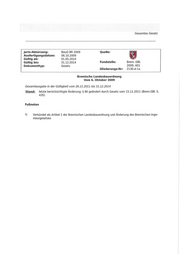 Gesamtes Gesetz juris-Abkürzung: BauO BR 2009 Quelle: Ausfertigungsdatum: 06.10.2009 Gültig ab: 01,05.2010 Gültig bis: 31,12,2014 Fundstelle: Brem. GBI. Dokumenttyp: Gesetz 2009, 401 Gliederungs-Nr: 2130-d-la Bremische Landesbauordnung Vom 6. Oktober 2009 Gesamtausgabe in der Gültigkeit vom 26.11.2011 bis 31.12.2014 Stand: letzte berücksichtigte Änderung: § 86 geändert durch Gesetz vom 15.11.2011 (Brem.GBl. S. 435) Fußnoten ,) Verkündet als Artikel 1 der Bremischen Landesbauordnung und Änderung des Bremischen Inge- nieurgesetzes