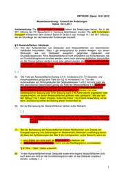 ENTWURF, Stand: 10.01.2012 Musterbauordnung – Entwurf der Änderungen Stand: 16.12.2011 Vorbemerkung: Die rot hinterlegten Passagen heben die Änderungen hervor, die in der 287. Sitzung der FK Bauaufsicht in Hamburg beschlossen wurden. Die gelb hinterlegten Passagen entstammen dem Entwurf Stand 01.06.2011 (vgl. Vorlage 10.1 der 287. Sitzung), der die Grundlage der nachstehenden Änderungen darstellt. § 6 Abstandsflächen, Abstände (1) ¹Vor den Außenwänden von Gebäuden sind Abstandsflächen von oberirdischen Gebäuden freizuhalten. ²Satz 1 gilt entsprechend für andere Anlagen, von denen Wirkungen wie von Gebäuden ausgehen, gegenüber Gebäuden und Grundstücksgrenzen. ³Eine Abstandsfläche ist nicht erforderlich vor Außenwänden, die an Grundstücksgrenzen errichtet werden, wenn nach planungsrechtlichen Vorschriften an die Grenze gebaut werden muss oder gebaut werden darf., oder soweit nach der umgebenden Bebauung i.S.d. § 34 Abs. 1 Satz 1 BauGB abweichende Gebäudeabstände zulässig sind. (…) 2 (5) ¹Die Tiefe der Abstandsflächen beträgt 0,4 H, mindestens 3 m. In Gewerbe- und 3 Industriegebieten genügt eine Tiefe von 0,2 H, mindestens 3 m. Vor den Außenwänden von Wohngebäuden der Gebäudeklassen 1 und 2 mit nicht mehr als 4 drei oberirdischen Geschossen genügt als Tiefe der Abstandsfläche 3 m. Sind nach der umgebenden Bebauung im Sinn des § 34 Abs. 1 Satz 1 BauGB abweichende 54 Abstandsflächentiefen zulässig, sind diese maßgeblich. Werden von einer städtebaulichen Satzung oder einer Satzung nach § 86 Außenwände zugelassen oder vorgeschrieben, vor denen Abstandsflächen größerer oder geringerer Tiefe als nach den Sätzen 1 bis 3 liegen müssten, finden die Sätze 1 bis 3 keine Anwendung, es sei denn, die Satzung ordnet die Geltung dieser Vorschriften an. (6) Bei der Bemessung der Abstandsflächen bleiben außer Betracht (…) 3. bei Gebäuden an der Grundstücksgrenze die Seitenwände von Vorbauten und Dachaufbauten, auch wenn sie nicht an der Grundstücksgrenze errichtet werden. (7) ¹Bei der Bemessung der Abstandsflächen bleiben Maßnahmen zum Zwecke der Energieeinsparung und Solaranlagen an bestehenden Gebäuden unabhängig davon, ob diese den Anforderungen der Abs. 2 bis 6 entsprechen, außer Betracht, wenn sie 1. eine Stärke von nicht mehr als 25 cm 0,25 m aufweisen und 2. nicht weniger als mindestens 2,50 m von der Nachbargrenze zurückbleiben. 2 § 67 Abs. 1 Satz 1 bleibt unberührt. 1 (8) In den Abstandsflächen eines Gebäudes sowie ohne eigene Abstandsflächen sind, auch wenn sie nicht an die Grundstücksgrenze oder an das Gebäude angebaut werden, zulässig (…) 1
