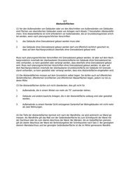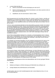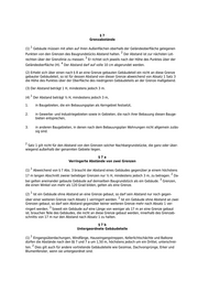 §7 Grenzabstände 1 (1) Gebäude müssen mit allen auf ihren Außenflächen oberhalb der Geländeoberfläche gelegenen 2 Punkten von den Grenzen des Baugrundstücks Abstand halten. Der Abstand ist zur nächsten Lot- 3 rechten über der Grenzlinie zu messen. Er richtet sich jeweils nach der Höhe des Punktes über der 4 Geländeoberfläche (H). Der Abstand darf auf volle 10 cm abgerundet werden. (2) Erhebt sich über einen nach § 8 an eine Grenze gebauten Gebäudeteil ein nicht an diese Grenze gebauter Gebäudeteil, so ist für dessen Abstand von dieser Grenze abweichend von Absatz 1 Satz 3 die Höhe des Punktes über der Oberfläche des niedrigeren Gebäudeteils an der Grenze maßgebend. (3) Der Abstand beträgt 1 H, mindestens jedoch 3 m. 1 (4) Der Abstand beträgt ½ H, mindestens jedoch 3 m, 1. in Baugebieten, die ein Bebauungsplan als Kerngebiet festsetzt, 2. in Gewerbe- und Industriegebieten sowie in Gebieten, die nach ihrer Bebauung diesen Bauge- bieten entsprechen, 3. in anderen Baugebieten, in denen nach dem Bebauungsplan Wohnungen nicht allgemein zuläs- sig sind. 2 Satz 1 gilt nicht für den Abstand von den Grenzen solcher Nachbargrundstücke, die ganz oder über- wiegend außerhalb der genannten Gebiete liegen. §7a Verringerte Abstände von zwei Grenzen 1 (1) Abweichend von § 7 Abs. 3 braucht der Abstand eines Gebäudes gegenüber je einem höchstens 2 17 m langen Abschnitt zweier beliebiger Grenzen nur ½ H, mindestens jedoch 3 m, zu betragen. Da- 3 bei gelten aneinander gebaute Gebäude auf demselben Baugrundstück als ein Gebäude. Grenzen, die einen Winkel von mehr als 120 Grad bilden, gelten als eine Grenze. 1 (2) Ist ein Gebäude ohne Abstand an eine Grenze gebaut, so darf sein Abstand nur noch gegen- 2 über einer weiteren Grenze nach Absatz 1 verringert werden. Ist ein Gebäude ohne Abstand an zwei Grenzen gebaut, so darf sein Abstand gegenüber keiner weiteren Grenze mehr nach Absatz 1 ver- 3 ringert werden. Soweit ein Gebäude auf eine Länge von weniger als 17 m an eine Grenze gebaut ist, brauchen Teile des Gebäudes, die nicht an diese Grenze gebaut werden, innerhalb des Grenzab- schnitts von 17 m nur den Abstand nach Absatz 1 zu halten. §7b Untergeordnete Gebäudeteile 1 (1) Eingangsüberdachungen, Windfänge, Hauseingangstreppen, Kellerlichtschächte und Balkone dürfen die Abstände nach den §§ 7 und 7 a um 1,50 m, höchstens jedoch um ein Drittel, unterschrei- 2 ten. Dies gilt auch für andere vortretende Gebäudeteile wie Gesimse, Dachvorsprünge, Erker und Blumenfenster, wenn sie untergeordnet sind.