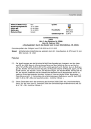 Gesamtes Gesetz Amtliche Abkürzung: LBO Quelle: Ausfertigungsdatum: 18.02.2004 Gültig ab: 01.06.2004 Gültig bis: 31.12.2015 Fundstelle: Amtsblatt Dokumenttyp: Gesetz 2004, 822 Gliederungs-Nr: 2130-1 Landesbauordnung (LBO) (Art. 1 des Gesetzes Nr. 1544) Vom 18. Februar 2004 zuletzt geändert durch das Gesetz vom 16. Juni 2010 (Amtsbl. I S. 1312). Gesamtausgabe in der Gültigkeit vom 17.09.2010 bis 31.12.2015 Stand: letzte berücksichtigte Änderung: geändert durch Art. 1 des Gesetzes Nr. 1715 vom 16. Juni 2010 (Amtsbl. I S. 1312) Fußnoten [1]) Die Verpflichtungen aus der Richtlinie 94/34/EG des Europäischen Parlaments und des Rates vom 22. Juni 1998 über ein Informa-tionsverfahren auf dem Gebiet der Normen und techni- schen Vorschriften (ABl. EG Nr. L 204 S. 37), zuletzt geändert durch die Akte über die Bedingun- gen des Beitritts der Tschechischen Republik, der Republik Estland, der Republik Zypern, der Re- publik Lettland, der Republik Litauen, der Republik Ungarn, der Republik Malta, der Republik Po- len, der Republik Slowenien und der Slowakischen Republik und die Anpassungen der die Eu- ropäische Union begründenden Verträge - Anhang II: Liste nach Artikel 20 der Beitrittsakte - 1. Freier Warenverkehr - H. Horizontale und verfahrensbezogene Maßnahmen vom 16. April 2003 (ABl. EG Nr. L 236 S. 68), sind beachtet worden. - Amtliche Fußnote 1. [2]) Dieses Gesetz dient auch der Umsetzung der Richtlinie 2006/123/EG des Europäischen Parla- ments und des Rates vom 12. Dezember 2006 über Dienstleistungen im Binnenmarkt (ABl. EU Nr. L 376 S. 36). - Amtliche Fußnote 2.
