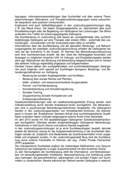 41 fegruppen, Informationsveranstaltungen über Suchtmittel und über externe Thera- pieeinrichtungen, Motivations- und Therapievorbereitungsgruppen sowie aufsuchen- de Gespräche nach positiven Urinkontrollen. Ergänzend sind auch Selbsthilfegruppen in den Justizvollzugseinrichtungen tätig, z. B. das Blaue Kreuz. Sie bieten Gruppengespräche an, übernehmen aber auch Einzelbetreuungen oder die Begleitung von Gefangenen bei Lockerungen. Sie öffnen außerdem ihre Treffen für lockerungsgeeignete Gefangene. Die Suchtberatung im Justizvollzug zielt darauf ab, suchtgefährdete oder suchtmit- telabhängige Gefangene auf eine Therapie oder andere Hilfen - außerhalb des Jus- tizvollzuges - vorzubereiten und die Voraussetzungen dafür zu schaffen. Informationen über die Suchtberatung und die speziellen Beratungs- und Behand- lungsangebote der jeweiligen Justizvollzugseinrichtung erhalten die Gefangenen be- reits bei der Aufnahme in die Anstalt. Im Rahmen der Behandlungsuntersuchung wird eine Suchtanamnese erstellt, die den Grad der Abhängigkeit einschätzt und Aussagen zu möglichen Ursachen trifft. Im Vollzugs- und Eingliederungsplan werden dann ggf. Maßnahmen der Beratung und Behandlung festgeschrieben und im Verlauf des weiteren Vollzugs regelmäßig angepasst und fortgeschrieben. Darüber hinaus stehen den suchtgefährdeten und suchtmittelabhängigen Gefange- nen auch folgende, nicht speziell auf Suchtfragen bezogene, Beratungs- und Be- handlungsmaßnahmen zur Verfügung: - Beratung bei sozialen Angelegenheiten und Konflikten, - Beratung über soziale Rechte und Pflichten, - delikt-, problem- und ressourcenorientierte Gruppenarbeit, - Partner- und Familienberatung, - Schuldnerberatung und Schuldenregulierung, - Soziales Training, - Gruppentraining Sozialer Kompetenzen und - Entlassungsvorbereitung. Substitutionsbehandlungen oder ein medikamentengestützter Entzug werden nach Indikationsstellung durch den/die Anstaltsarzt/-ärztin durchgeführt. Die Behandlun- gen sind in psychosoziale Behandlungsmaßnahmen eingebettet. Die Gefangenen werden in den Justizvollzugsanstalten von Anstaltsärzten/-ärztinnen, die überwie- gend in Kursen der Ärztekammer Sachsen-Anhalt eine suchttherapeutische Qualifi- kation erworben haben und/oder beigezogene externe Ärzte/-innen behandelt. Im Jahr 2013 wurde mit 103 opiatabhängigen Gefangenen Substitutionsbehandlun- gen durchgeführt. Überdies werden drogenabhängigen Gefangenen Behandlungs- maßnahmen in Haft durch interne und externe Dienste angeboten. In den Justizvollzugseinrichtungen ist je ein/e Suchtbeauftragte/r bestellt, dem/der jeweils die fachliche Leitung für die Aufgabenwahrnehmung in der Suchtarbeit über- tragen worden ist. Zusätzlich sind Bedienstete als Suchtkrankenhelfer/-innen ausge- bildet und eingesetzt worden. In der Justizvollzugsanstalt Burg wird die Suchtbera- tung durch externe Fachkräfte im Rahmen der sog. „Public Private Partnership“ (PPP) angeboten. Die vollzugsinterne Suchtarbeit ergänzt die notwendigen Maßnahmen zum Gesund- heitsschutz der Gefangenen in enger Zusammenarbeit mit dem ärztlichen Dienst. Zu den Kernaufgaben der Suchtberatung zählt die Informations- und Motivationsar- beit mit behandlungsbereiten Inhaftierten. Bewusstmachung und Aufklärung sollen dazu beitragen, die gesundheitlichen, tatbezogenen und sozialen Folgen von Sucht- mitteln zu verdeutlichen. Bereits während der Haftzeit werden Gefangene in stationä-